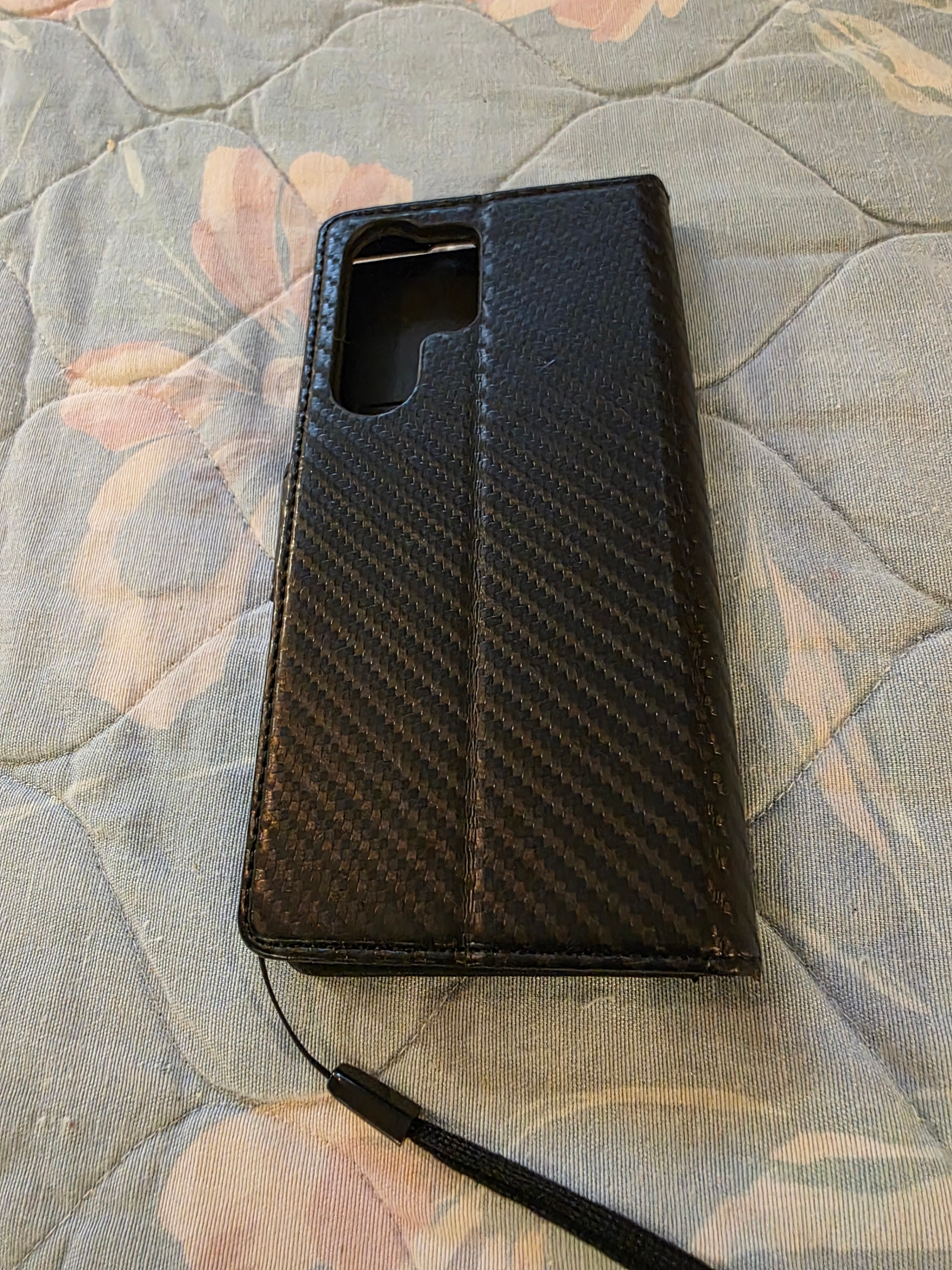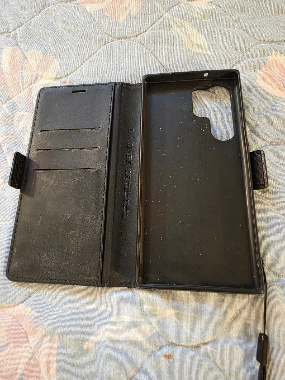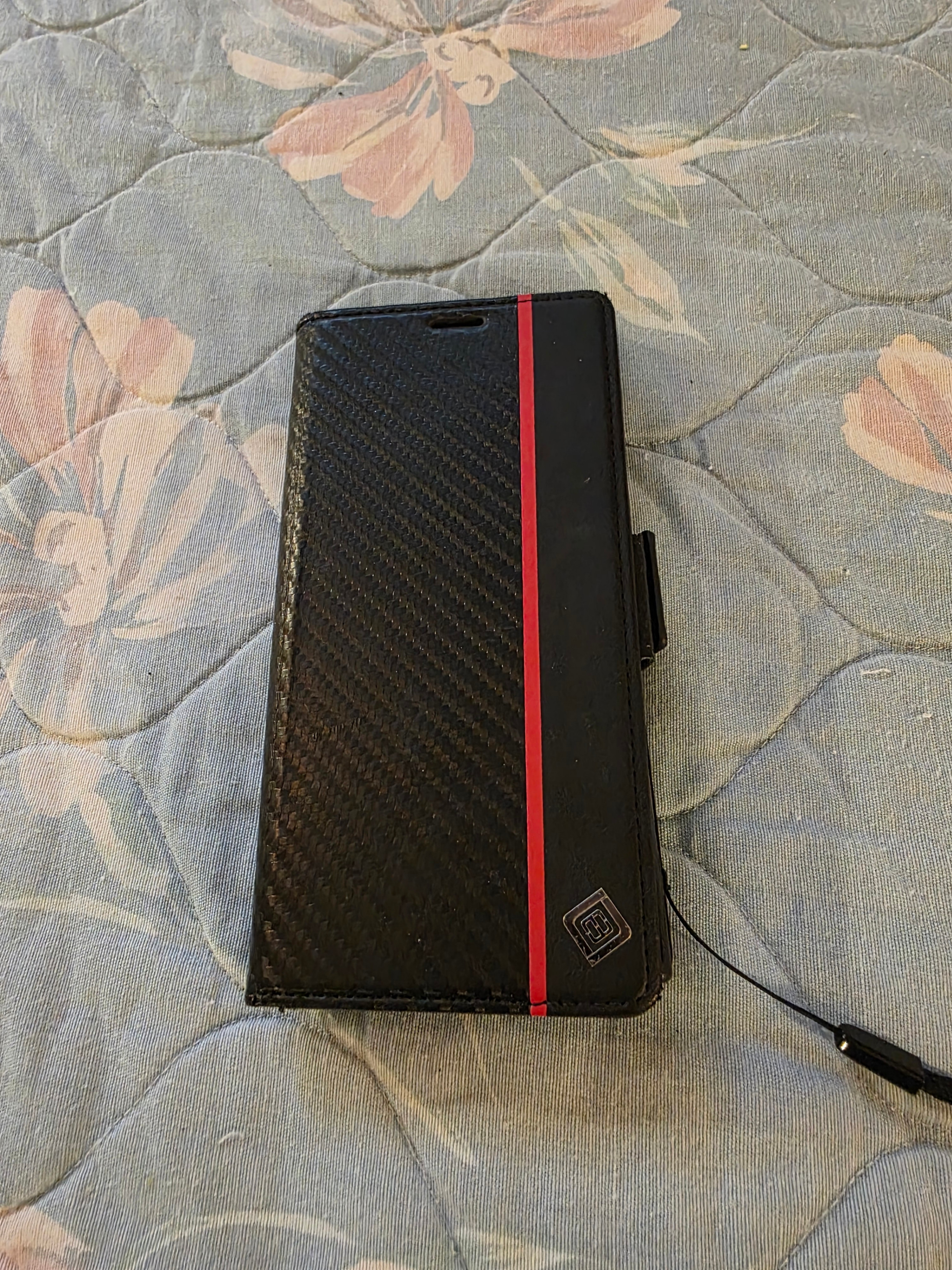 Black and Red Cell Phone Case for a Samsung Galaxy phone. Made by LC Imeeke. Has room for 3 cards inside.