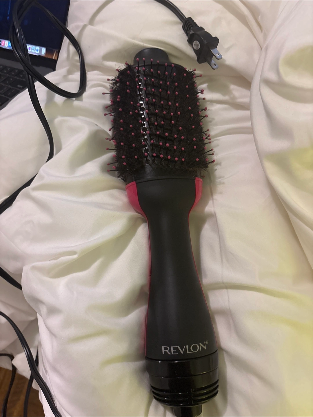 Selling a Revlon One-Step Hair Dryer & Volumizer Hot Air Brush. This hot air brush is designed to dry and volumize your hair in one step. It features a unique oval brush design for smoothing the hair, while the round edges create volume. Perfect for achieving salon-quality results at home!