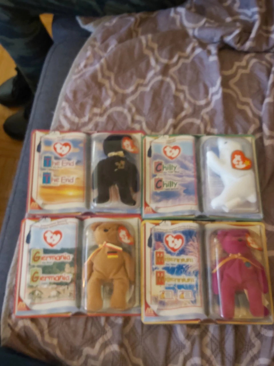 The 4 "ty" brand bear collectibles are unused and in still sealed in their boxes.