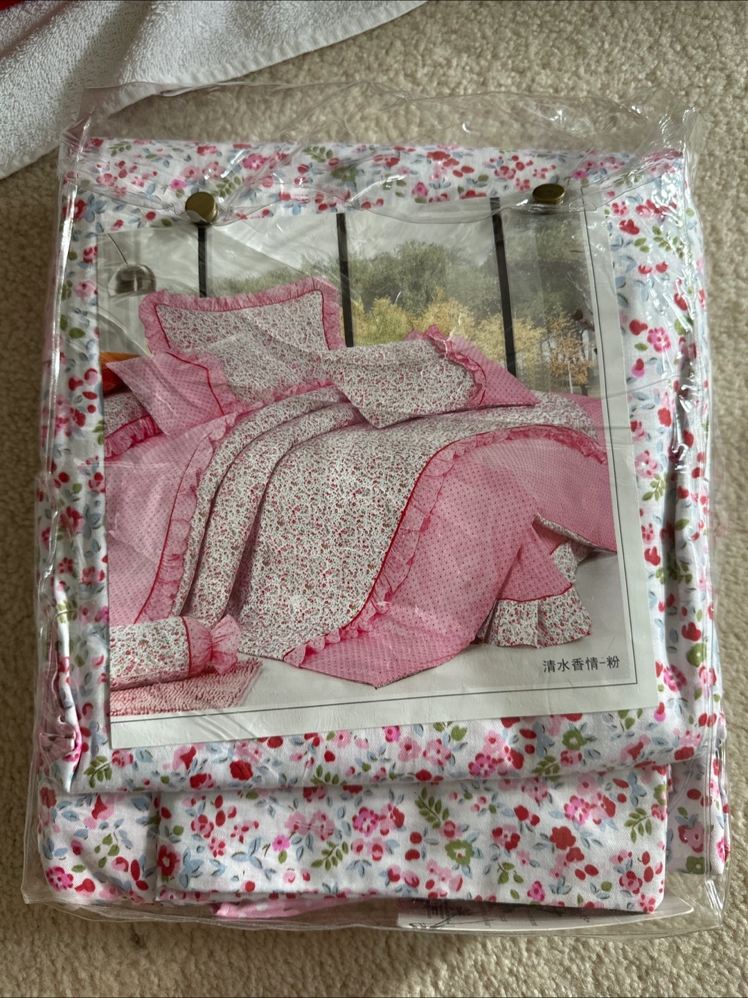 Selling a brand new bedding set with a lovely floral print! It's still in its original packaging, so it's in perfect condition. Perfect for adding a touch of spring to your bedroom.