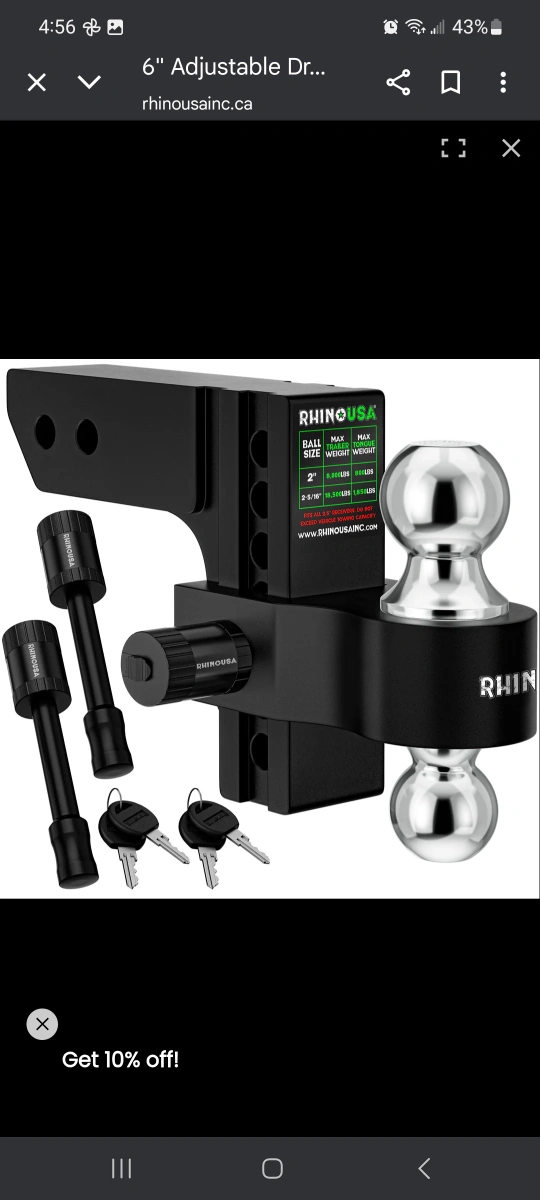 RHINO USA 6" Adjustable Drop Hitch brand new in box