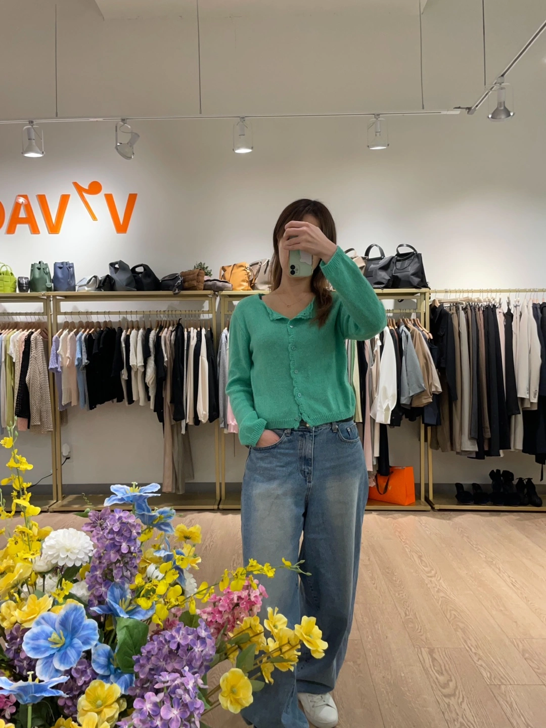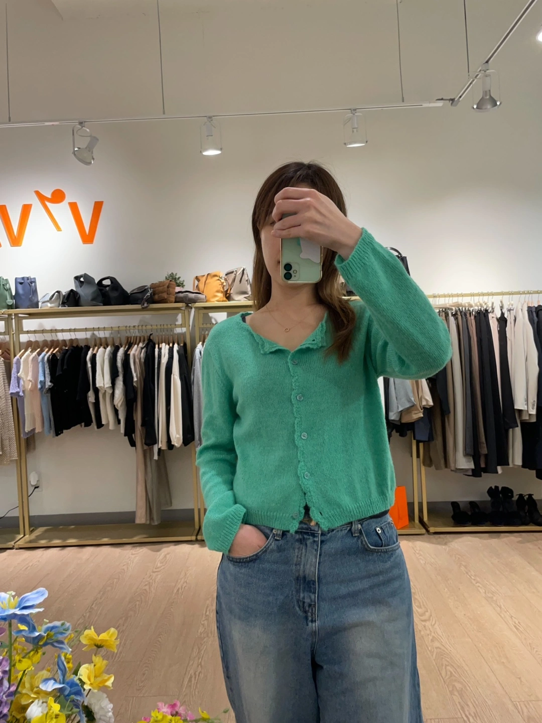 A cute green cardigan that is sourced directly from Korea! It's a lovely green colour and would be perfect for layering.