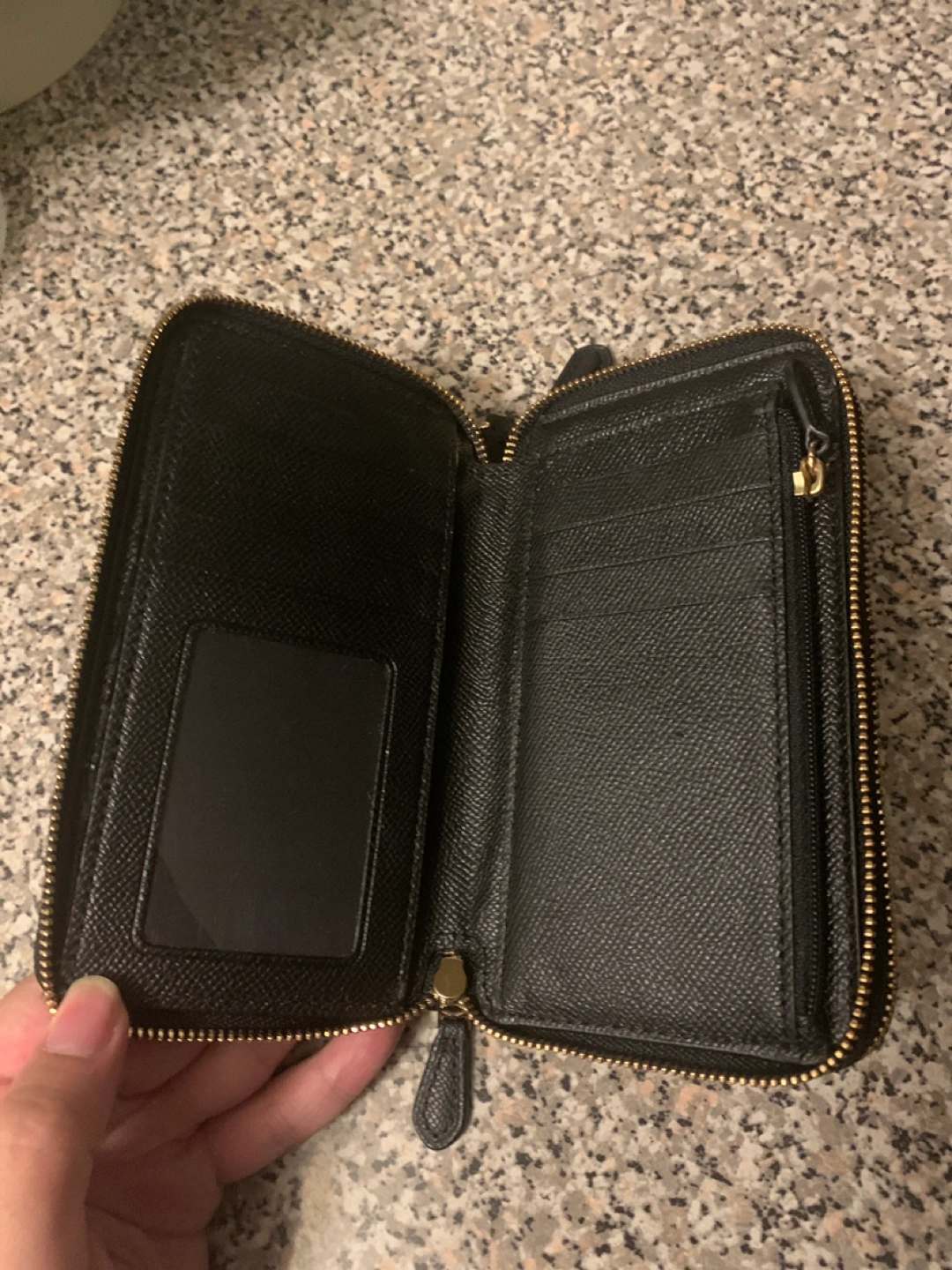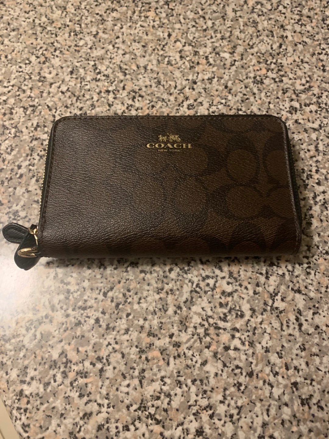 Selling a Coach zip around wallet in good condition. It features a zip closure and has several compartments for cards and cash. The exterior has the classic Coach logo pattern.