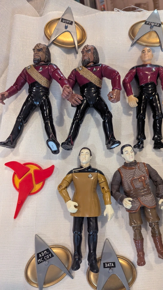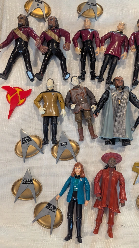 Selling a collection of 18 Star Trek: The Next Generation action figures! Includes characters like Picard, Data, Worf, and more. Some figures come with their stands. Also includes a new in box Admiral Leonard McCoy figure.