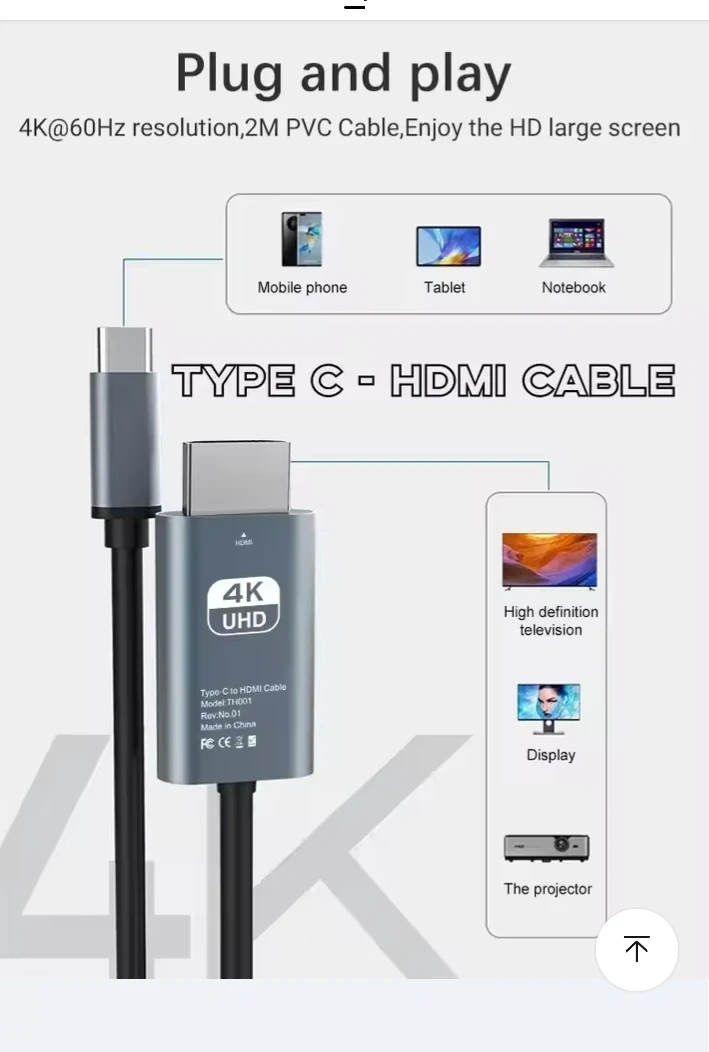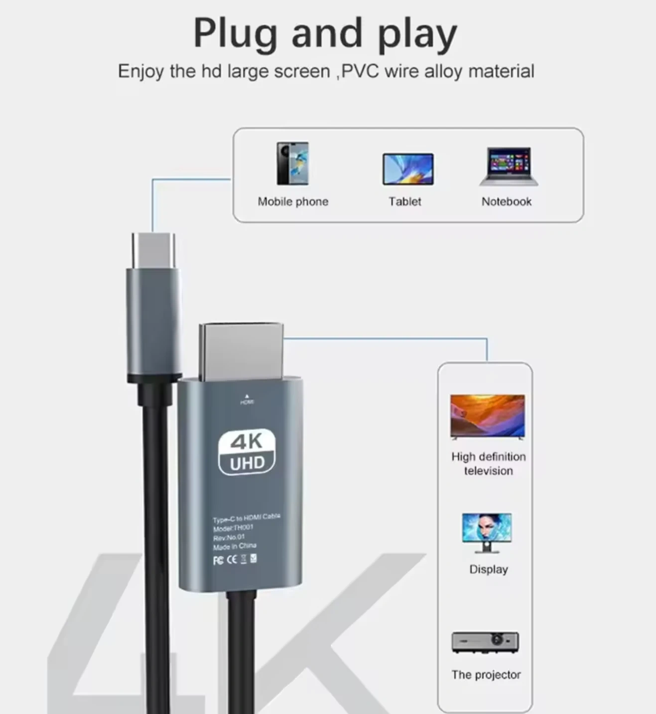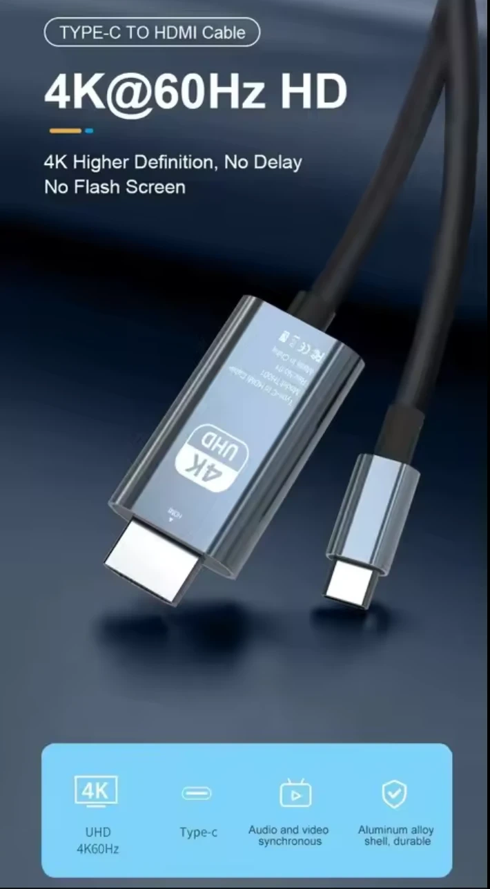 4K 60Hz HD Video Conversion Cable Type-C To HDMI,
