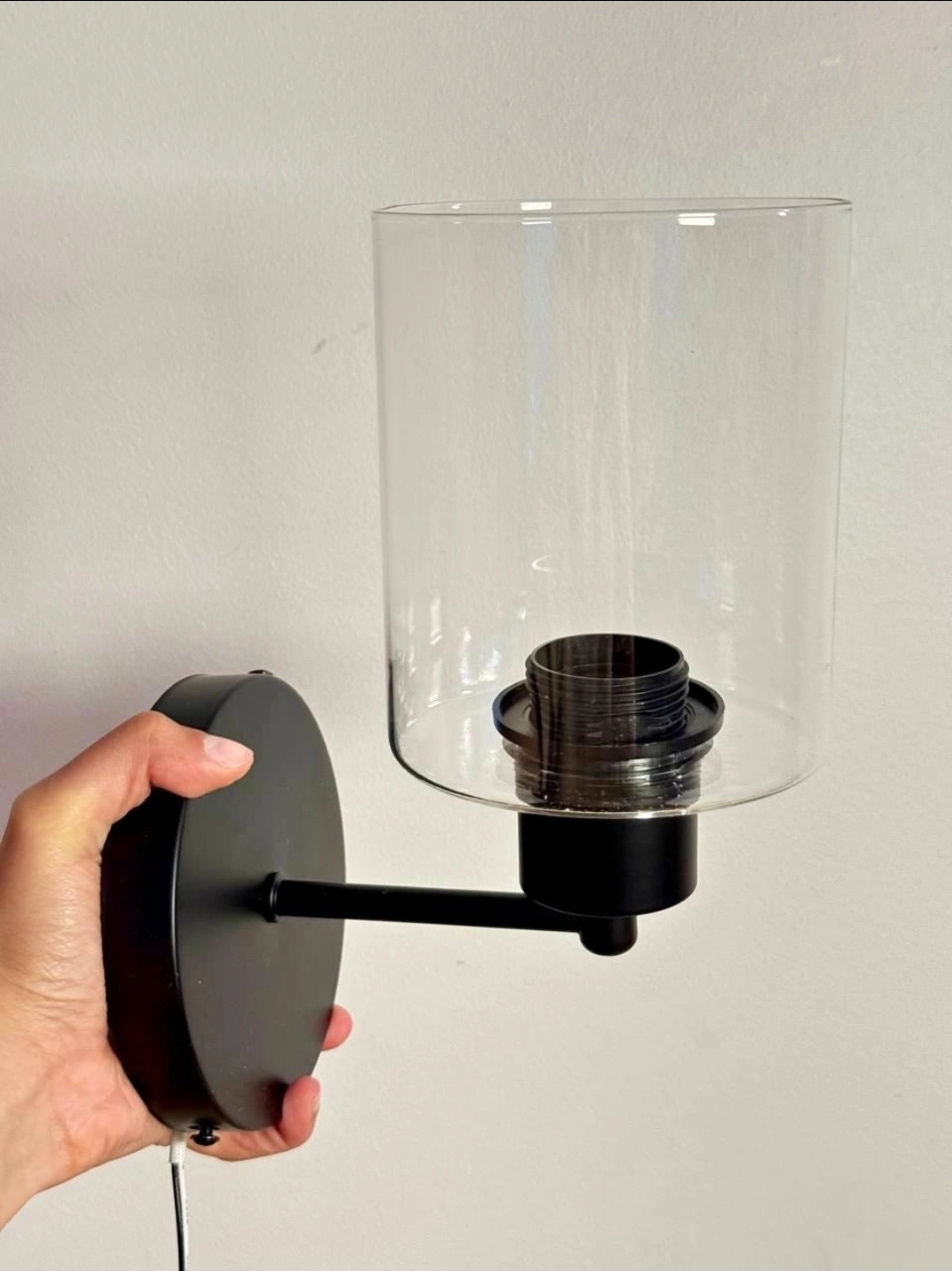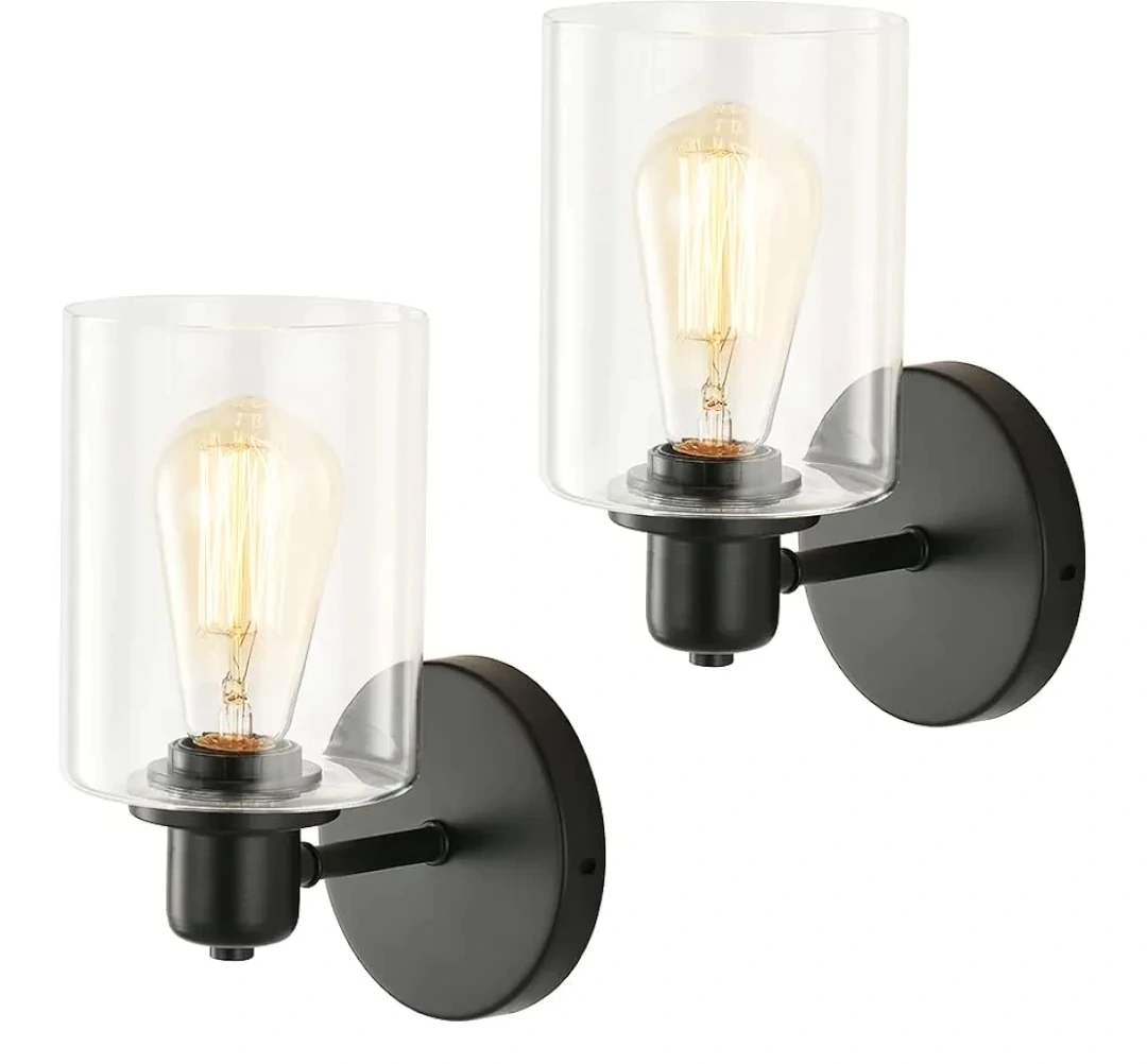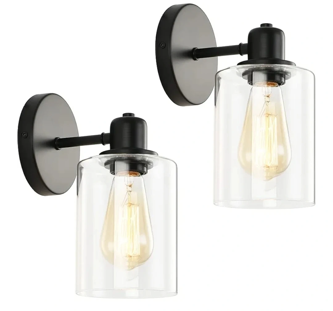 A Pair of Black Wall Sconce with Clear Glass Shade
