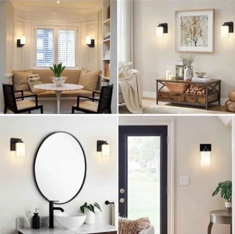 New in box. Stylish black Metal Sconces Wall Lighting with Clear Glass Shade,Bathroom Black Vanity Light Matte Black Wall Sconce, Matte Black Vanity Lights for Bathroom, Modern Wall Light Fixtures. Approximately 4.72 inches wide and 5.91 inches high