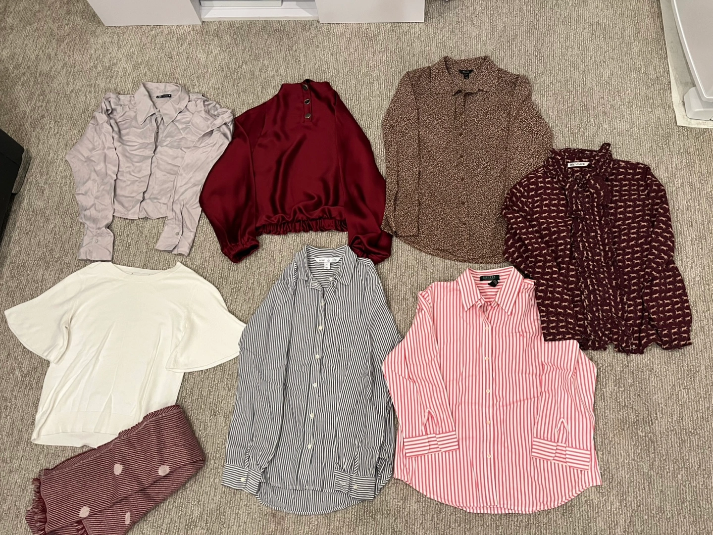 There are shirts, blouses, pants, and a blazer. Brands include Zara Banana Republic Simon’s MANGO RW&Co. and others. Great for refreshing your wardrobe or finding some new favourite pieces! I have knits, summer shirts, layering pieces, and others items in my other ads too.