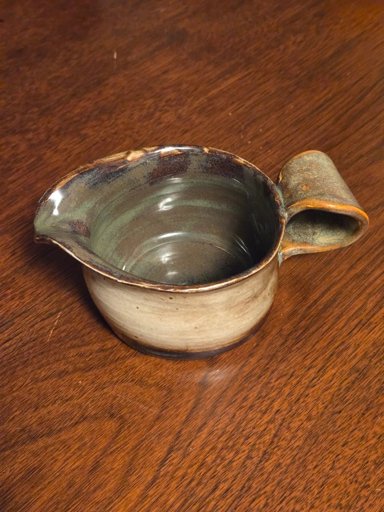 Short stoneware pouring vessel with handle