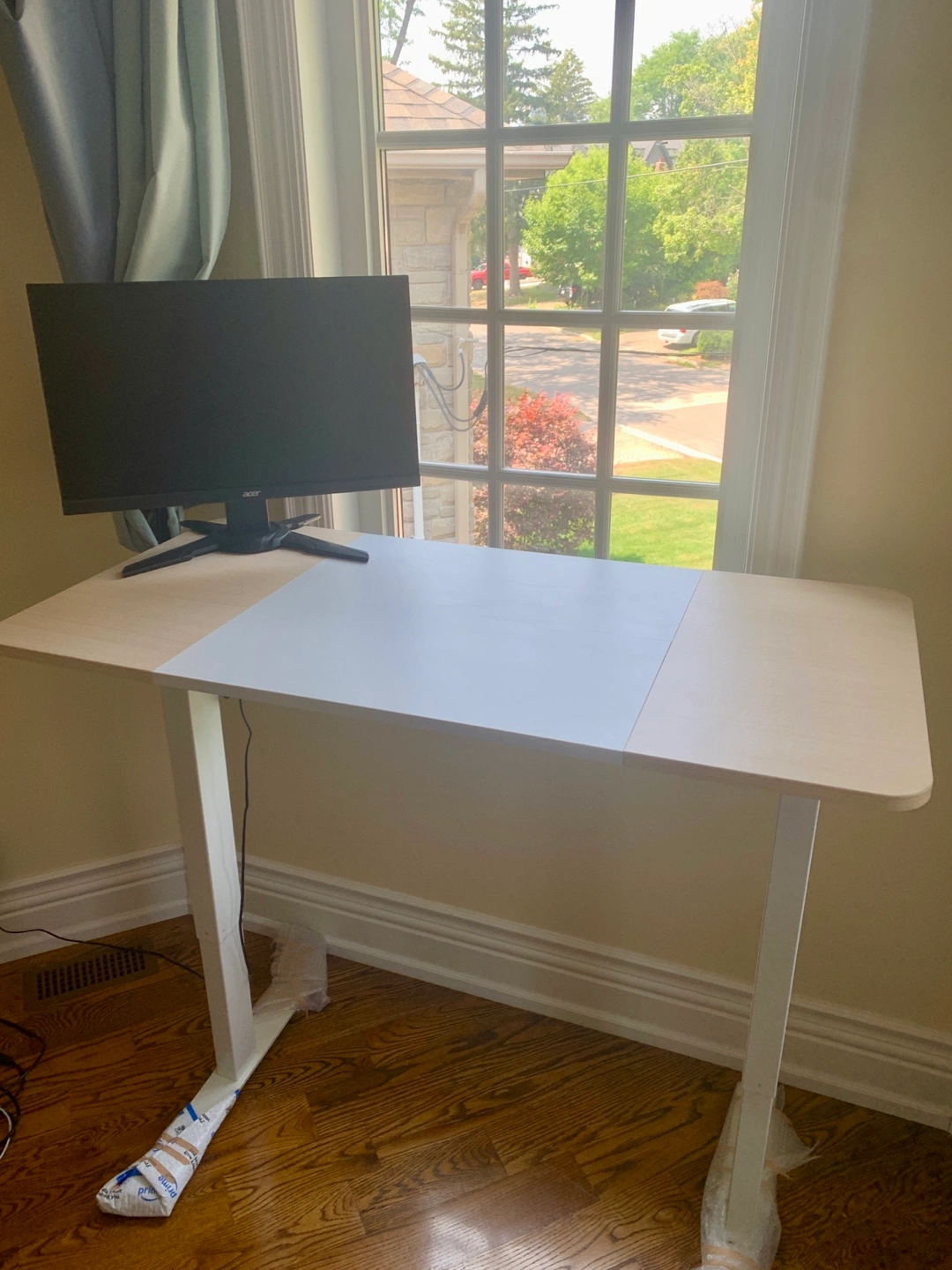 VIVO electric stand-up desk, height range from 29.3“ to 48.3”, perfect for any sitting and standing need White and light wood colour scheme, good condition and looks new and modern Tabletop area: 47.3" x 23.6" - great for desktop, laptop and/or working area Pick up in North York (Sheppard & Willowdale) Suggest 2 person to move it due to the weight of the desk :) Original price: $250 before tax