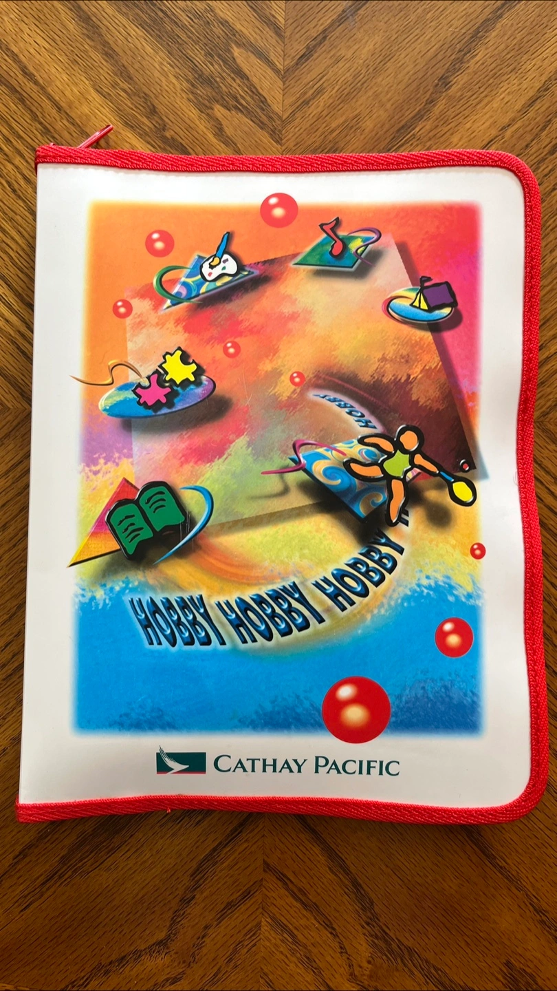 For the aviation enthusiast with young kids or a kid at heart who likes collecting Cathay Pacific memorabilia, a brand new kids’ activity binder awaits you. Includes plastic die, notepad w/ trivia games, lead pencil, 6 mini pencil crayons, soft puzzle. Only available for passengers with kids who ask on Asia flights, asking only $5 for my coffee fund.