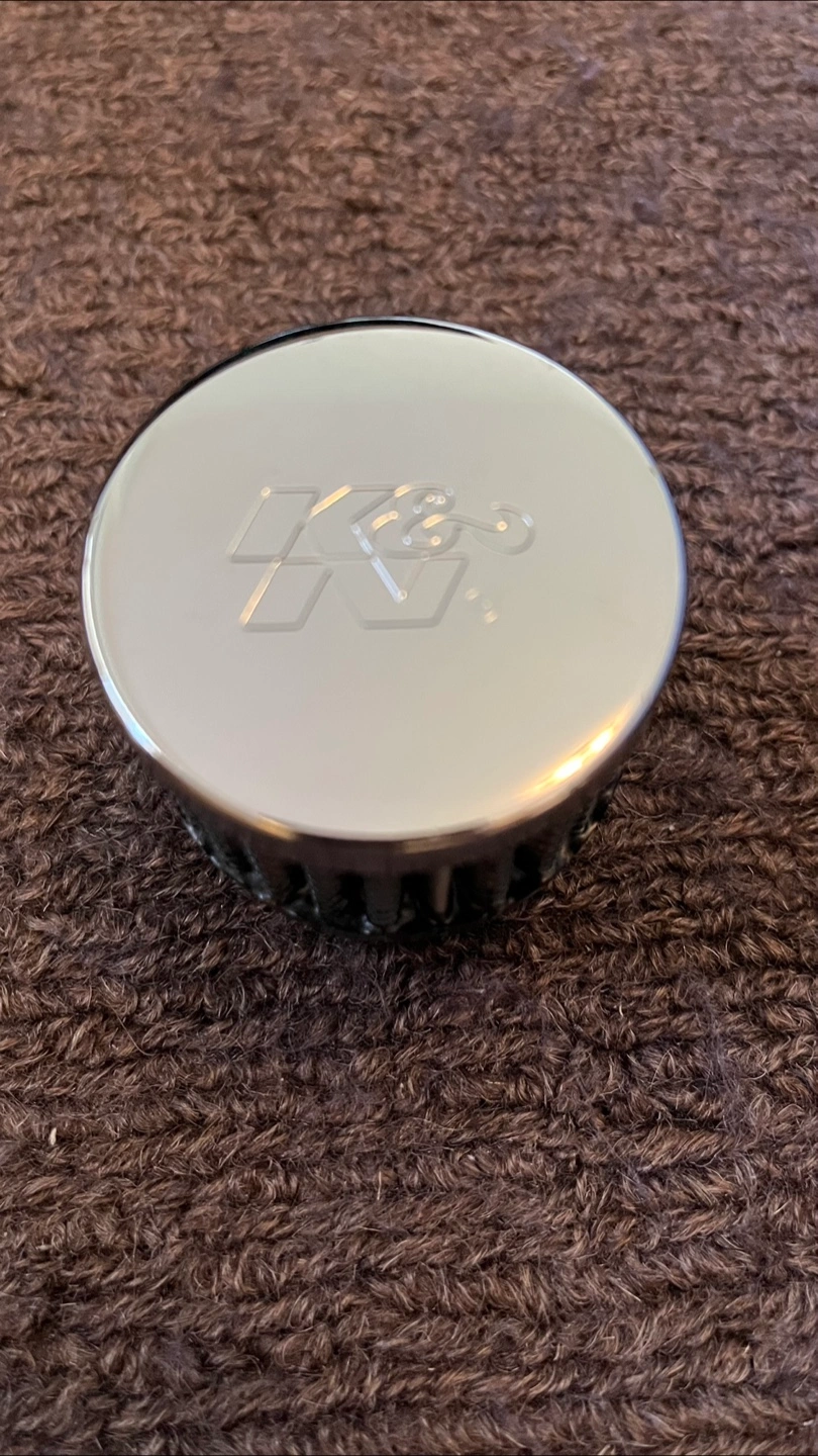 This genuine K&N crankcase vent filter was previously in my EM1 but will fit other vehicles as long as breathers measure half an inch at its opening. Height and length are 2 inches. Pre-oiled and a nice addition to your clean engine bay. Only $15 for form and function.