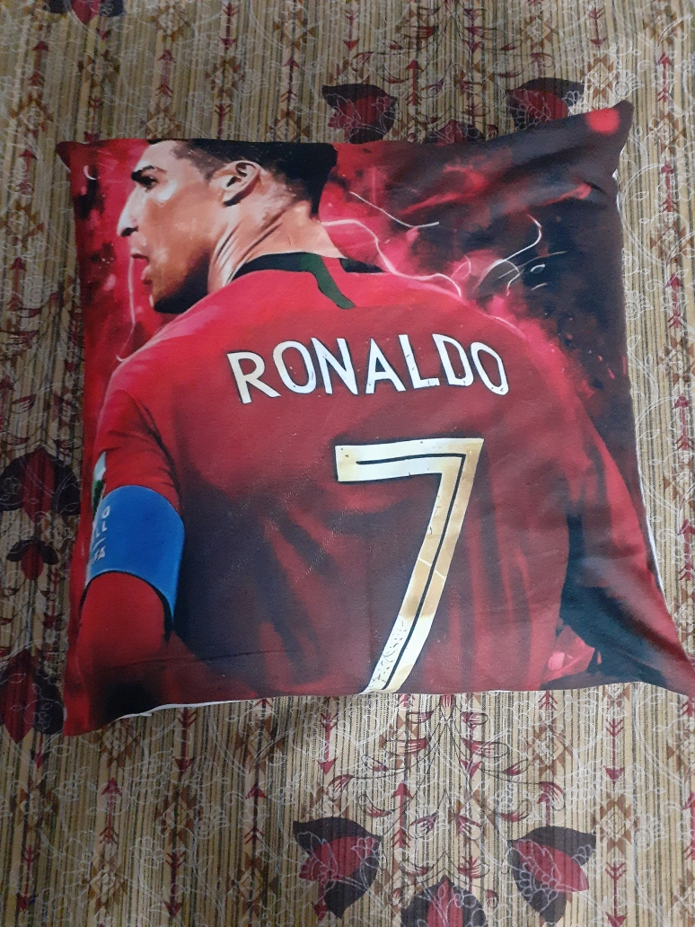 Here's a pillow cover featuring Cristiano Ronaldo. It's in great condition and ready to add some sporty flair to your space!