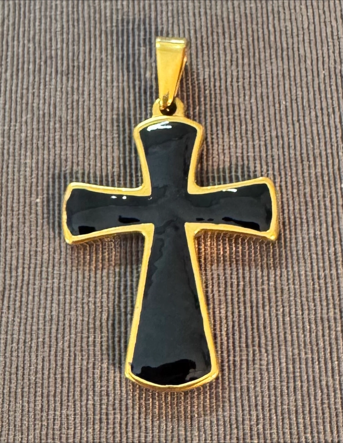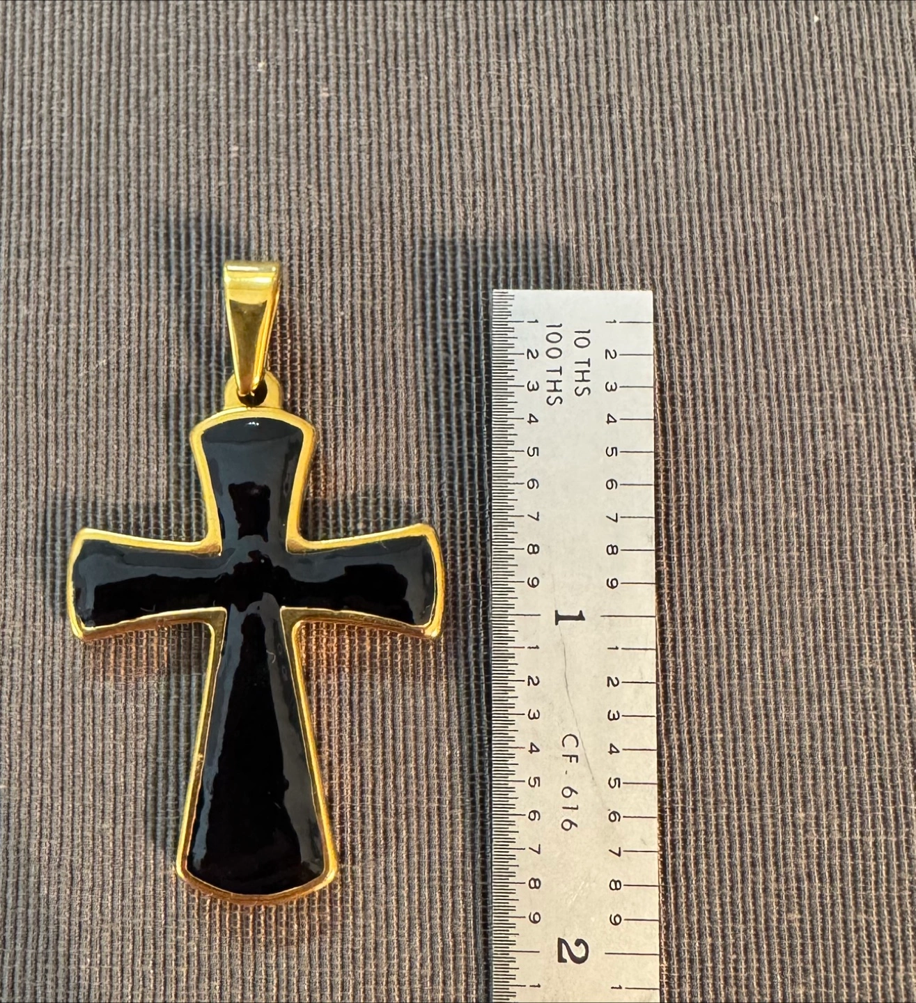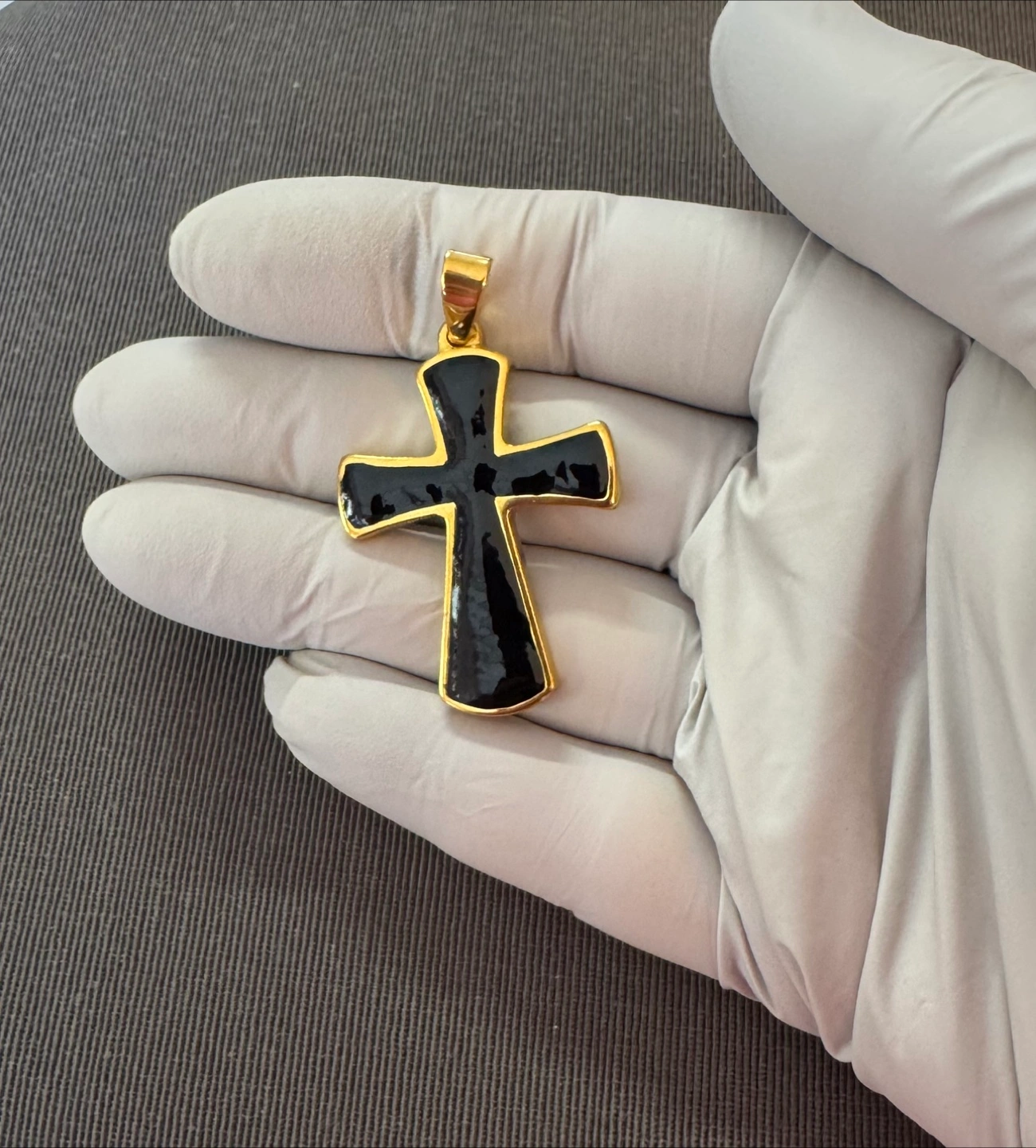 Black Onyx Enameled 14K Plated Reversible Pendant Cross