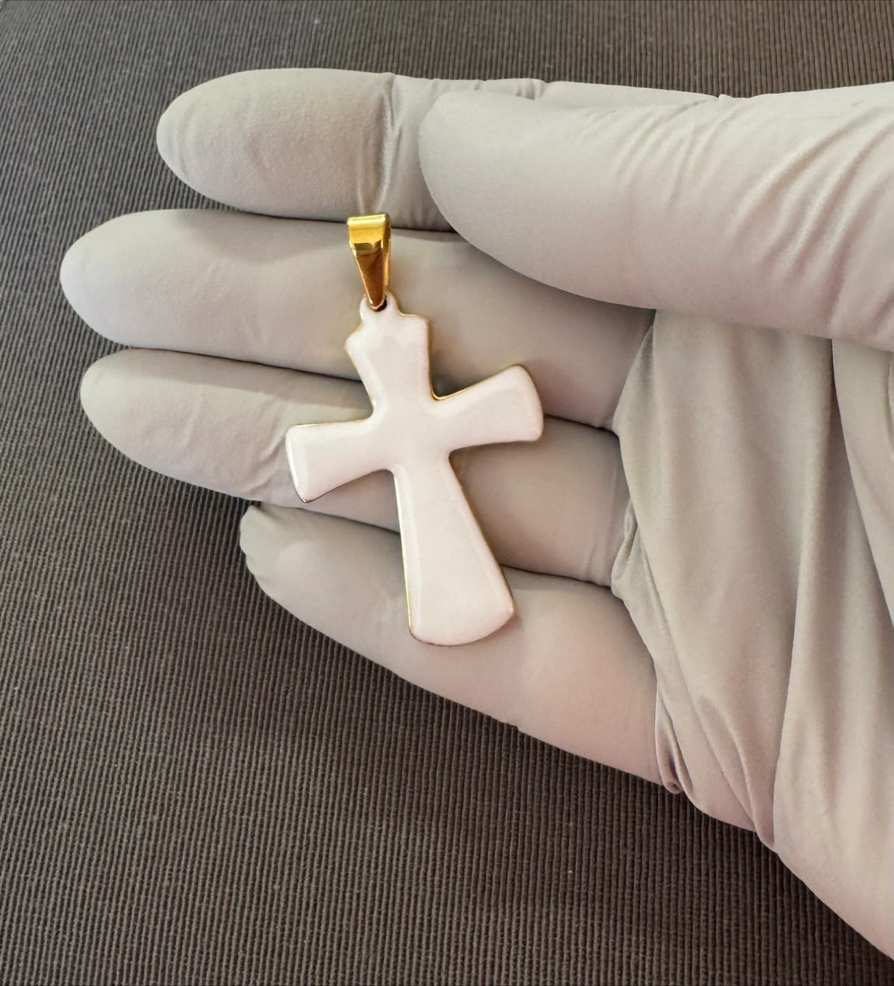 This pendant Cross by ICXC Jewelry features a versatile Cross design, perfect for those looking for a unique and meaningful piece of fine jewelry. The pendant is plated with 14k gold and adorned with enamel details, showcasing intricate craftsmanship. With a double-sided design that includes hand enameling in Black Onyx and Snow White component, this pendant offers versatility and style for any outfit or occasion. The pendant is a timeless and elegant addition to any jewelry collection, making it a perfect gift or a stylish accessory for oneself.