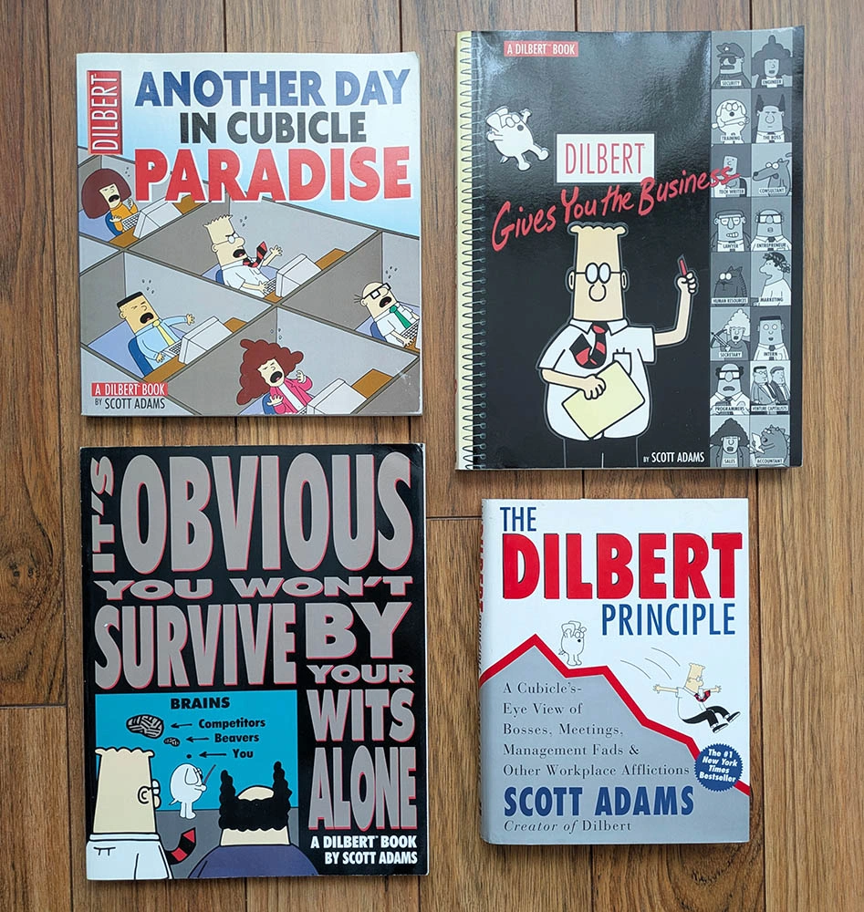 A collection of 4 Dilbert comic/cartoon books in good condition.