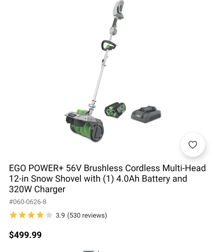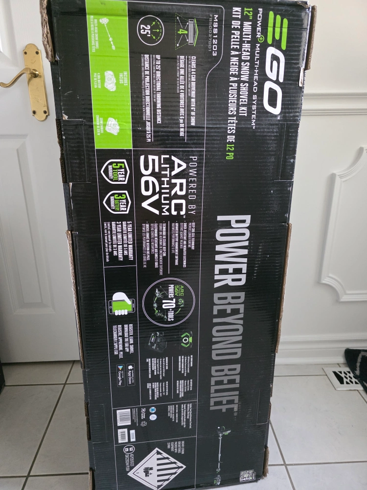 BRAND NEW IN BOX SEALED with receipt & warranty. Retails $500+tax, price is *FIRM* (no tax). Pickup 16th Av/McCowan Rd Markham. The Snow Shovel Kit is a part of the EGO POWER+ Multi-Head System. Directional control of its up to 25-foot throwing distance makes it unlike any other cordless snow shovel on the market. The Snow Shovel attachment cleans a 12-inch-wide path, making it great for snow removal on sidewalks, driveways, and decks. Clear 6 inches of snow on a 4-car driveway with the included 56V 4.0Ah ARC Lithium battery. The innovative overload protection system prevents clogging by regulating the intake. The Power Head is compatible with all EGO Multi-Head attachments so you have the flexibility with the system. Equipped with a high-efficiency brushless motor, variable speed trigger, 2-speed switch, and lock off switch for added safety. Included in this kit is the electric Snow Shovel Attachment, Power Head, 56V 4.0Ah ARC Lithium battery and 320W charger. Experience Power Beyond Belief without the noise, fuss, and fumes. Includes the Power Head (PH1400), Snow Shovel Attachment (SSA1200), 56V 4.0Ah battery (BA2242T), and 320W charger (CH3200) Throws snow up to 25 feet with directional control Clears a 4-car driveway with 6 inches of snow on a single charge with the included 4.0Ah ARC Lithium™ battery Overload protection clutch releases auger rotation to prevent damage to motor and electronics High-efficiency brushless motor delivers long run times, low vibrations, and an extended motor life Variable speed trigger and two-speed selector IPX4-rated weather-resistant construction Snow Shovel Attachment compatible with EGO POWER+ Multi-Head System Power Heads (PH1400, PH1420) 5-year limited tool warranty, 3-year limited battery warranty