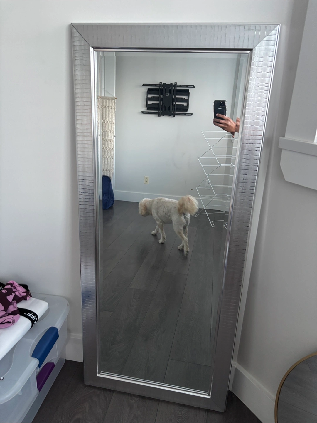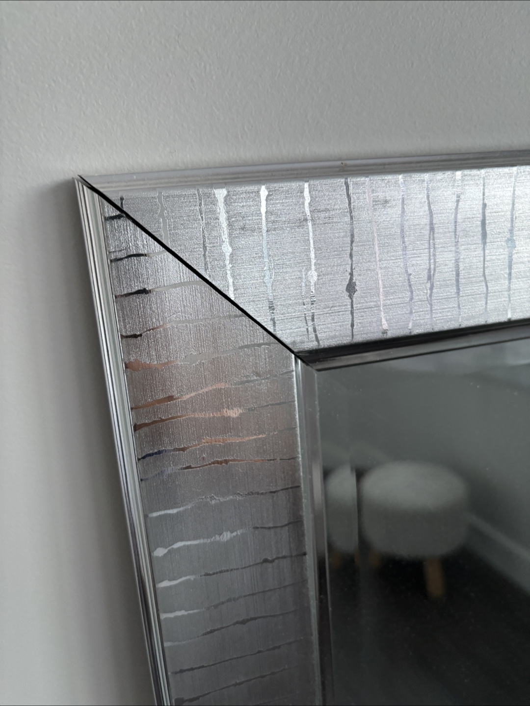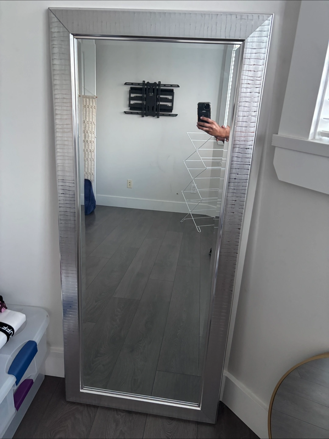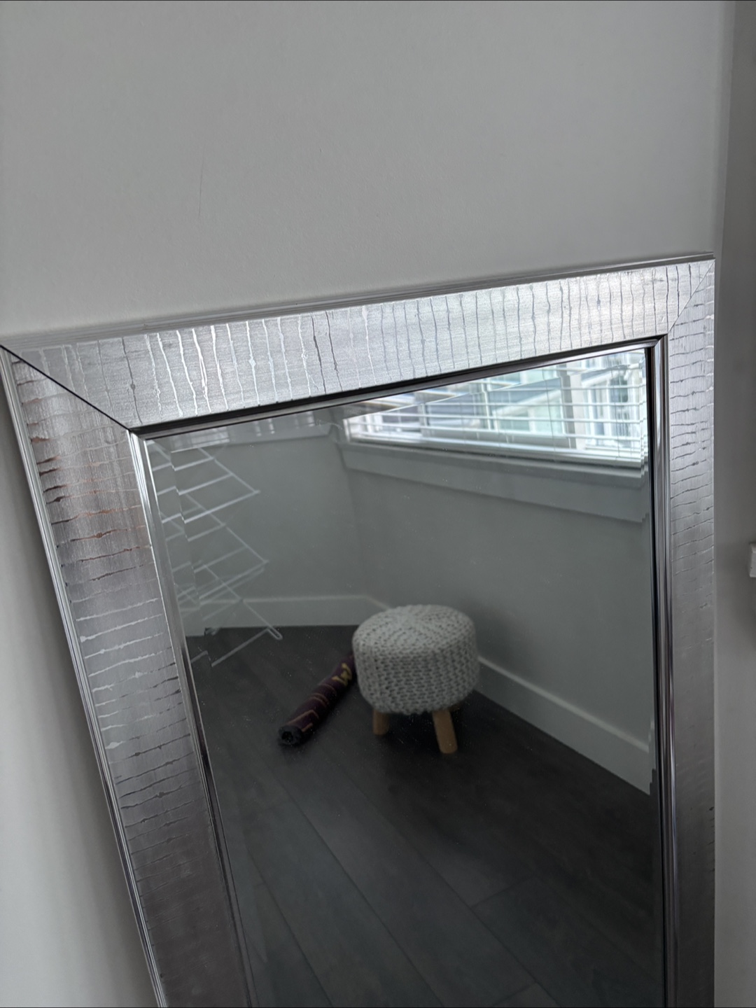 Selling a full-length mirror with a silver frame. It's in great condition and ready to brighten up your space!