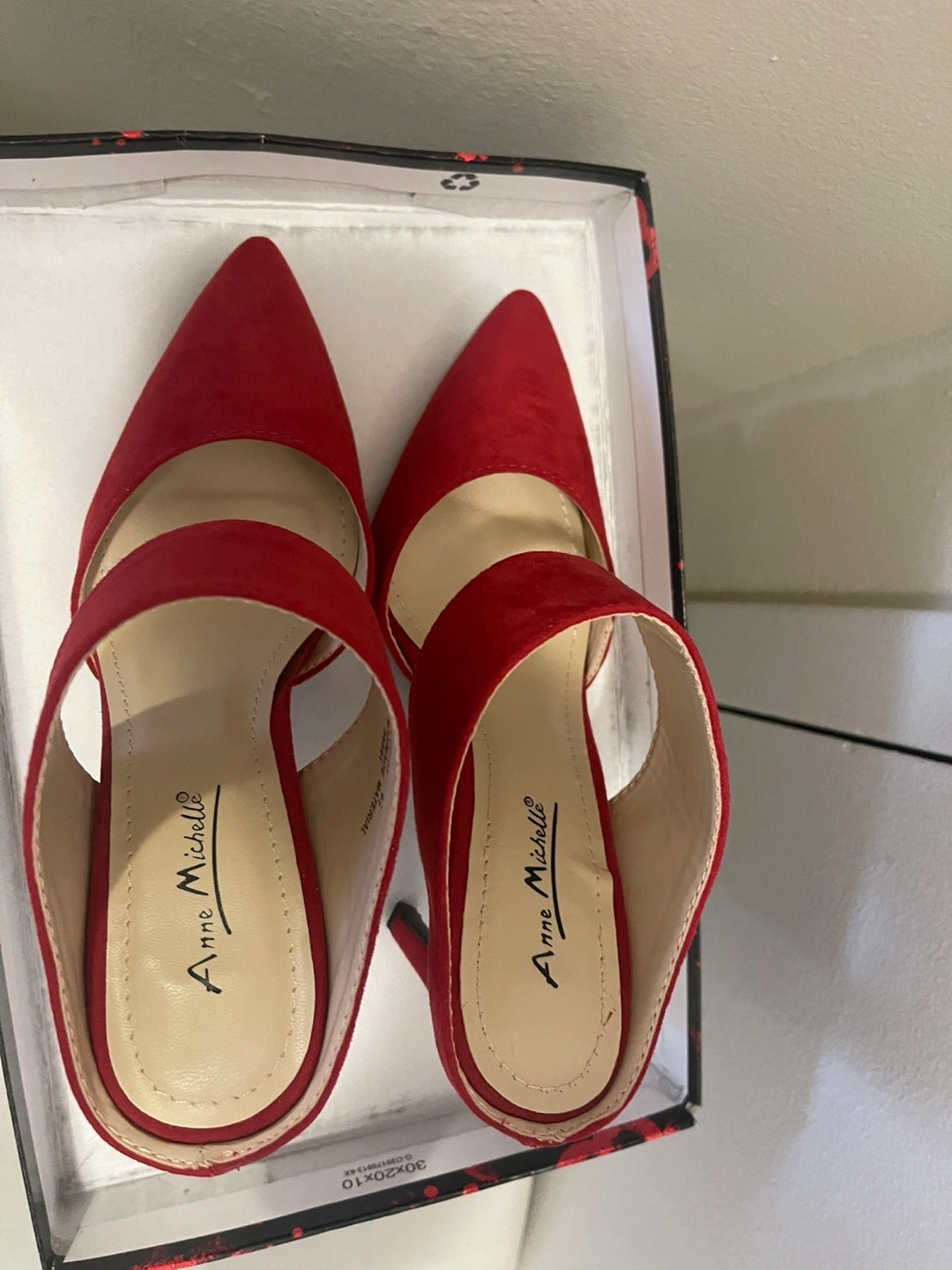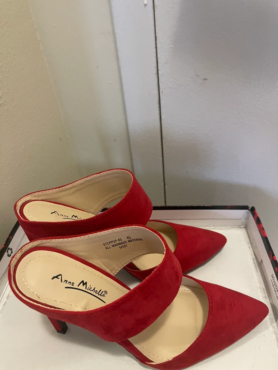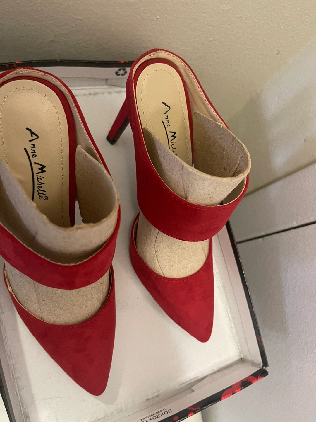 These Anne Michelle heels are a vibrant red and in great shape! They are a size 6.5 and come with their original box