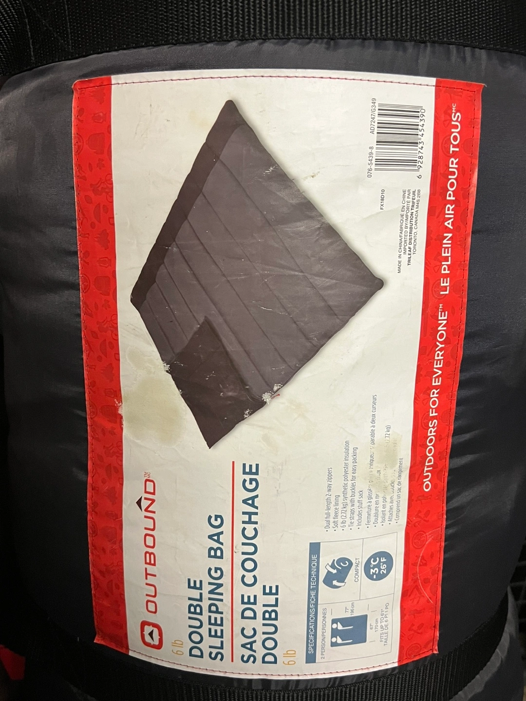 Selling an Outbound double sleeping bag! It's in great condition and perfect for camping.