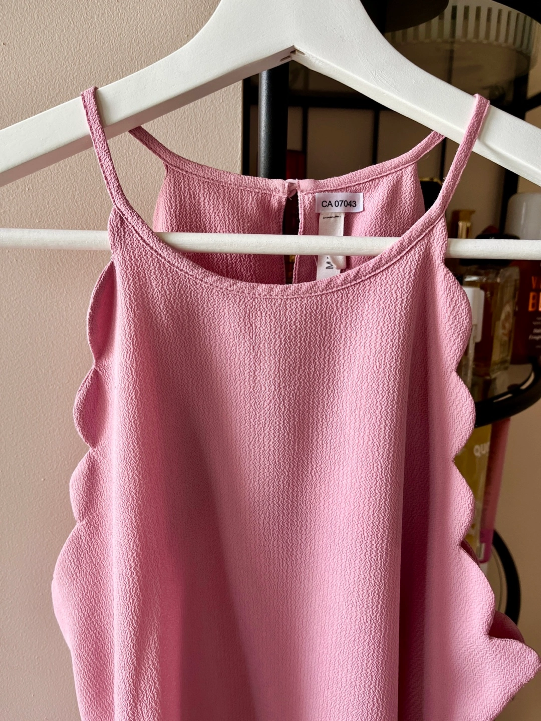 Here's a cute pink tank top with a scalloped hem! It's in perfect condition (worn once) and would be a lovely addition to your summer wardrobe.