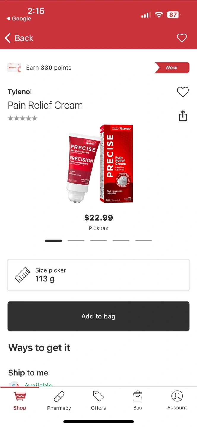 I'm selling a brand new Tylenol Precise Pain Relief Cream! This cream contains lidocaine 4% and is unscented. It comes in a 113g tube with a rollerball applicator for easy, mess-free application. Expiry Date is February 2027