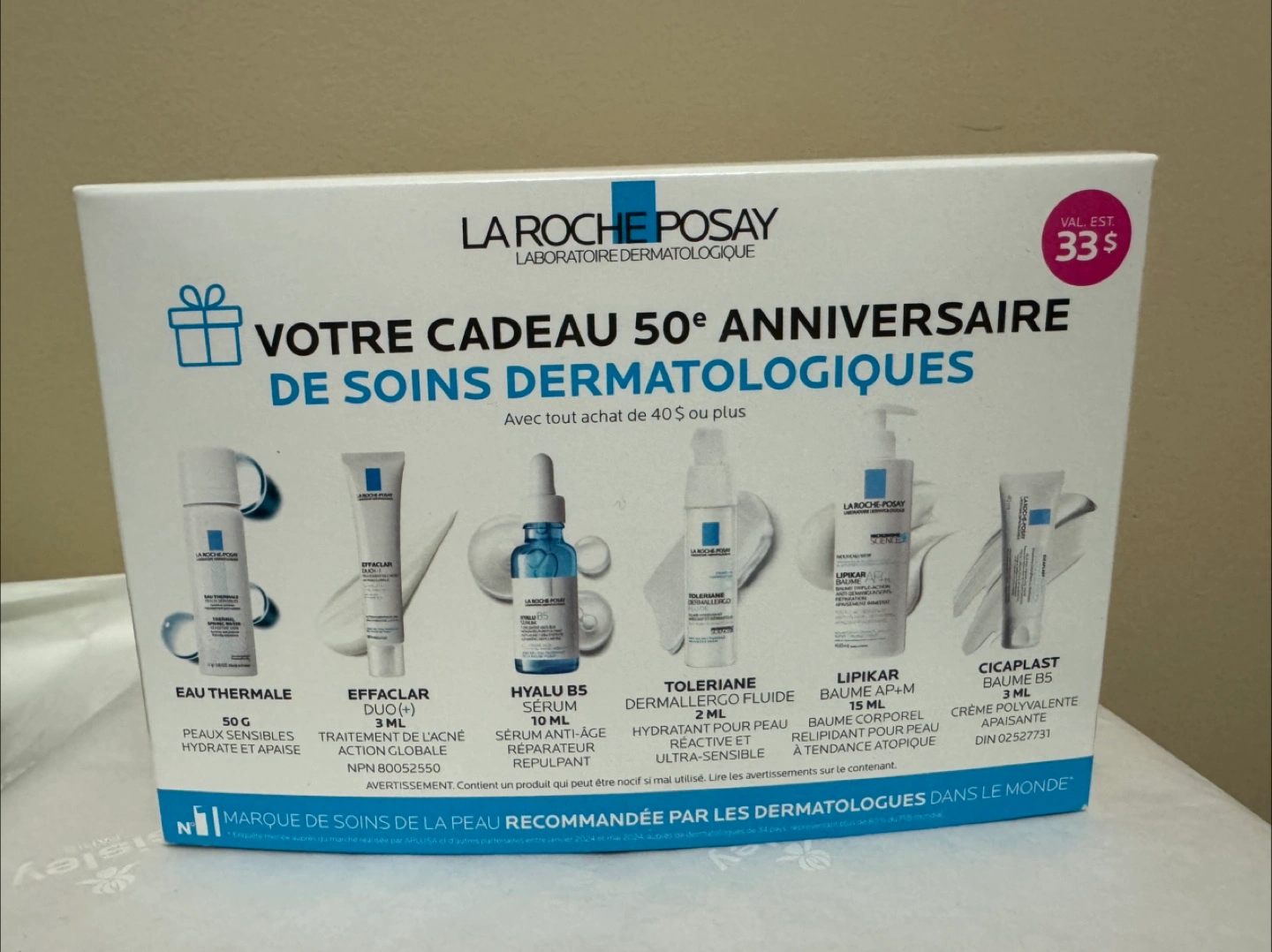 Selling a La Roche-Posay 50th Anniversary skincare gift set! It includes Eau Thermale (50g), Effaclar Duo(+) (3ml), Hyalu B5 Serum (10ml), Toleriane Dermallergo Fluide (2ml), Lipikar Baume AP+M (15ml), and Cicaplast Baume B5 (3ml)