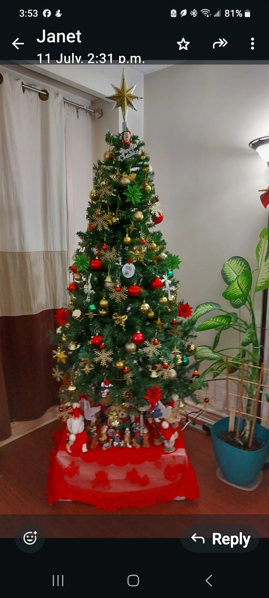 Selling a festive Christmas tree adorned with beautiful ornaments. It's perfect for adding a touch of holiday cheer to your home!