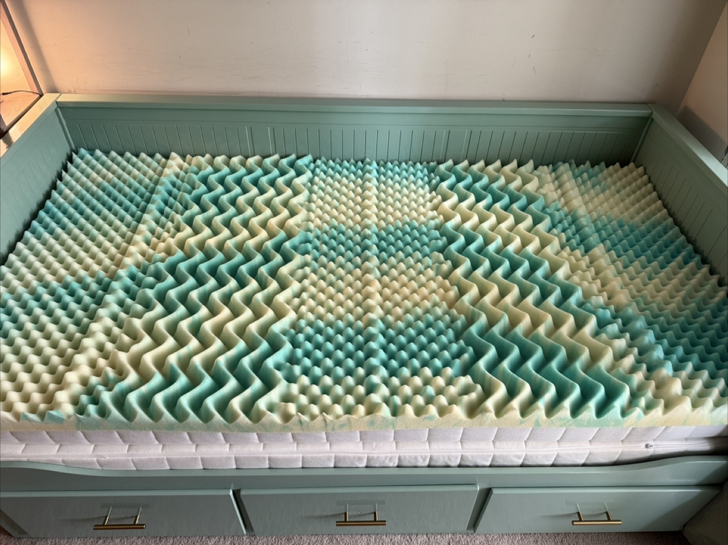 Purchased for guest bedroom, used less than 10 times. Upgrading to a larger bed.