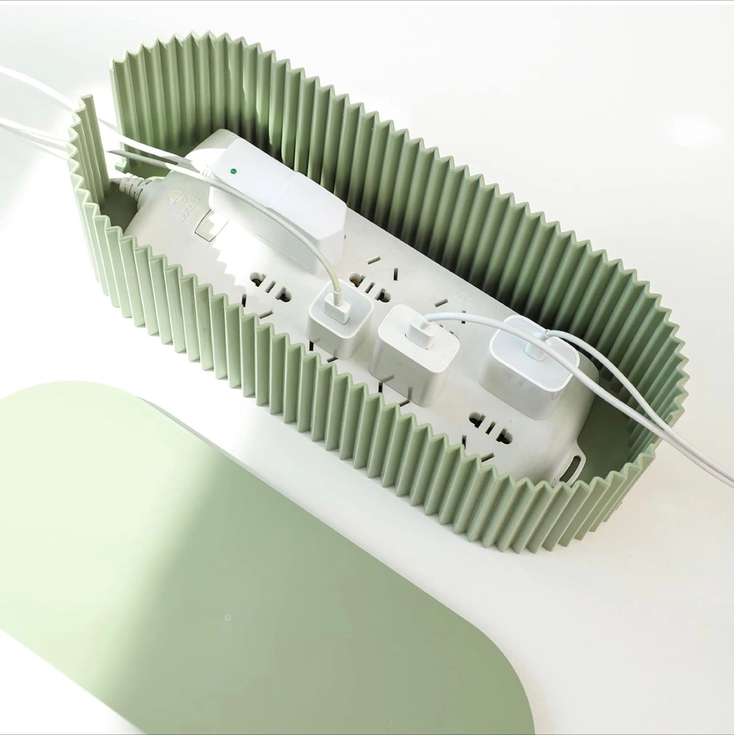 Keep your cables tidy with this cable management box! It's great for hiding power strips and cords to keep your space neat and organized. The dimensions are approximately 12.99 x 5.16 x 4.37 inches.