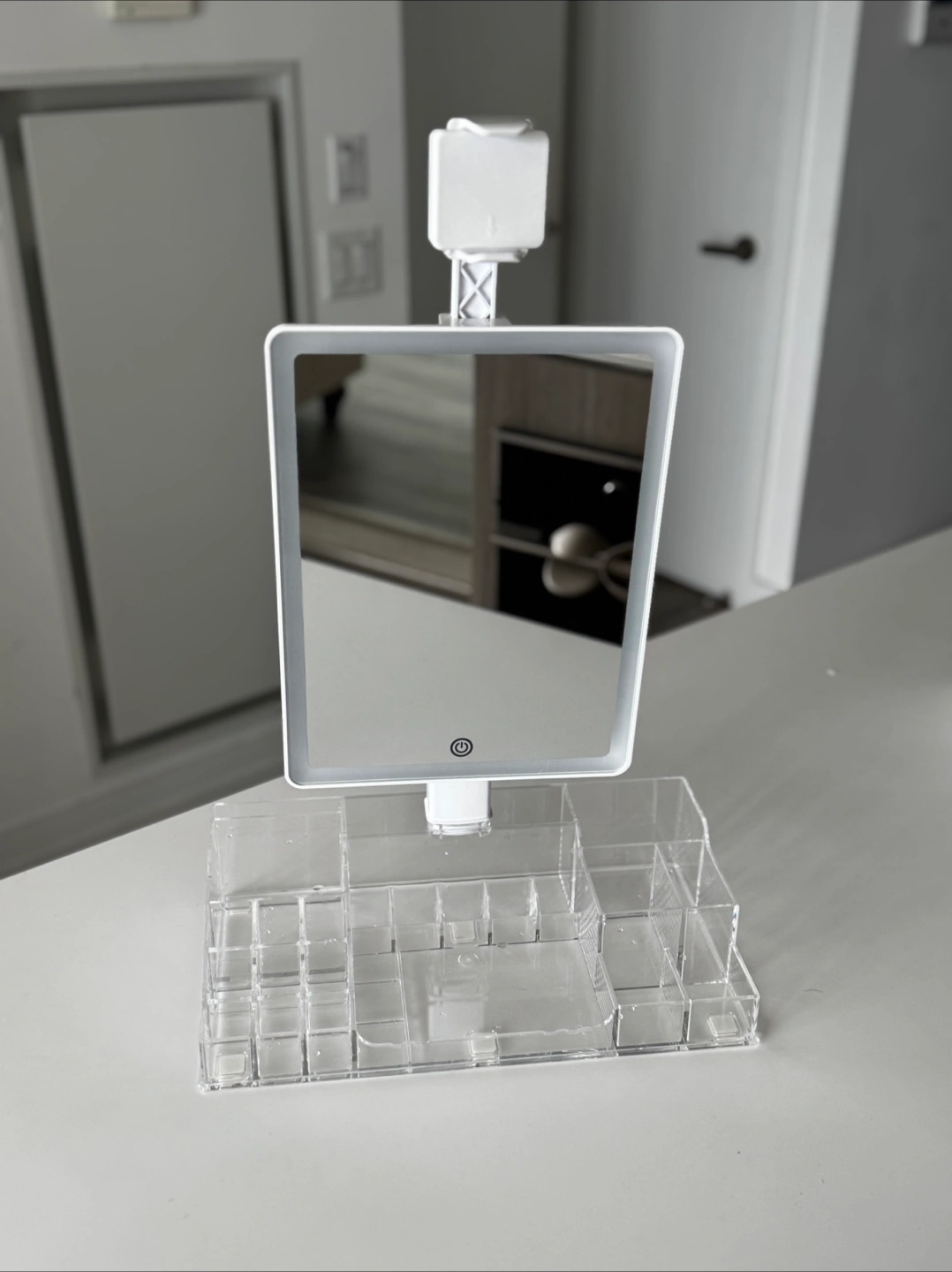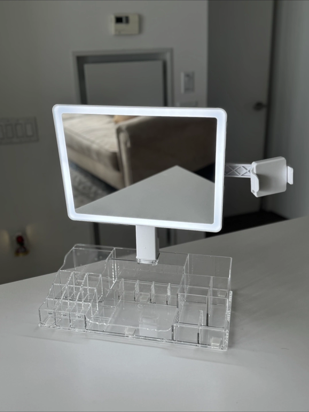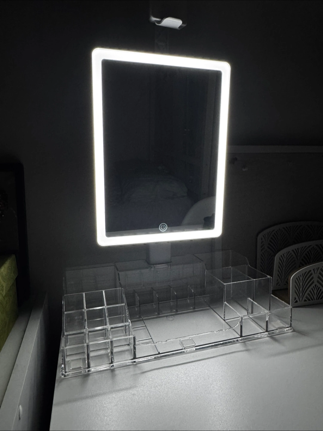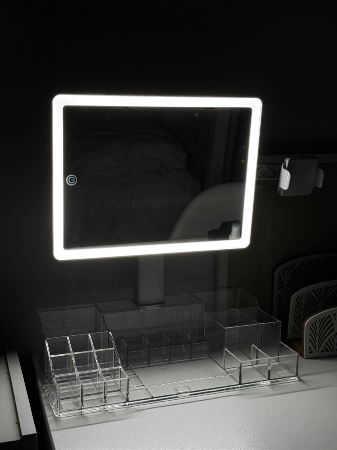 Selling a makeup vanity mirror with an organizer base! The mirror measures about 63cm in height and 40cm in width. It's perfect for your daily makeup routine and keeping everything organized