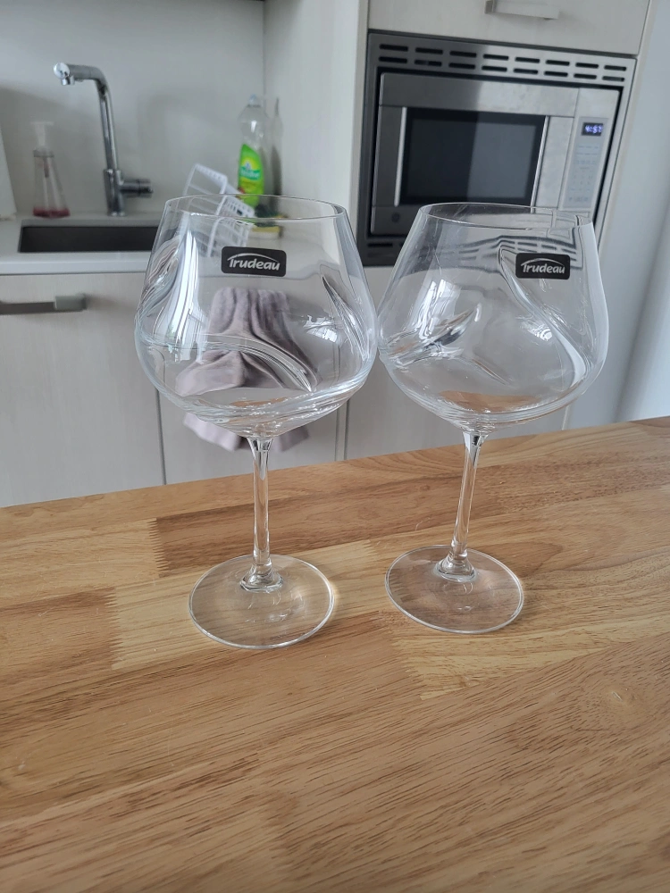 Selling a set of two Trudeau wine glasses. They're in great shape and ready for your next dinner party or cozy night in. Perfect for enjoying your favourite wine!
