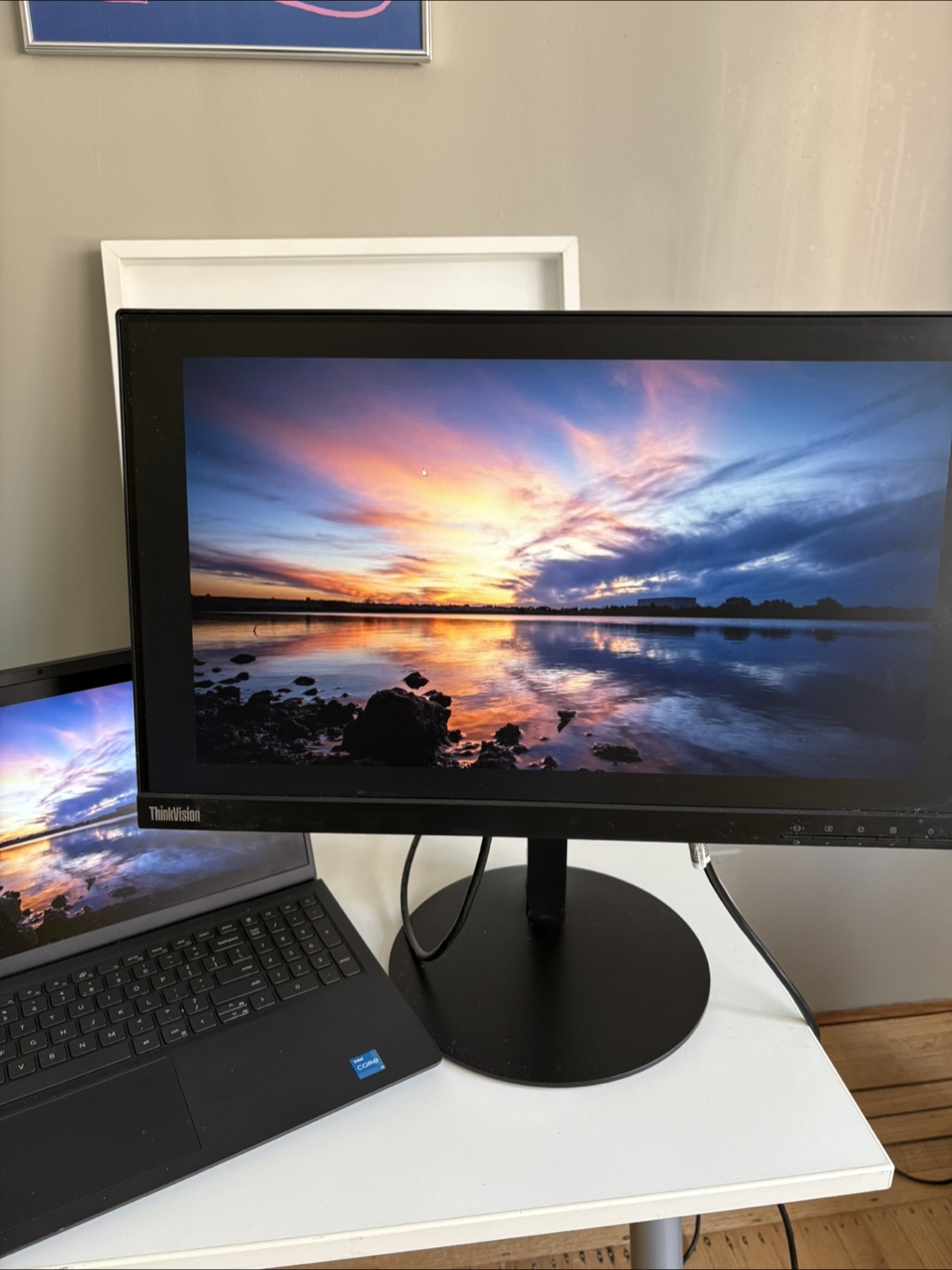 Selling a Lenovo ThinkVision T22i-10 monitor in great condition! This monitor features a sleek design and provides clear visuals for work or entertainment. Adjustable height.