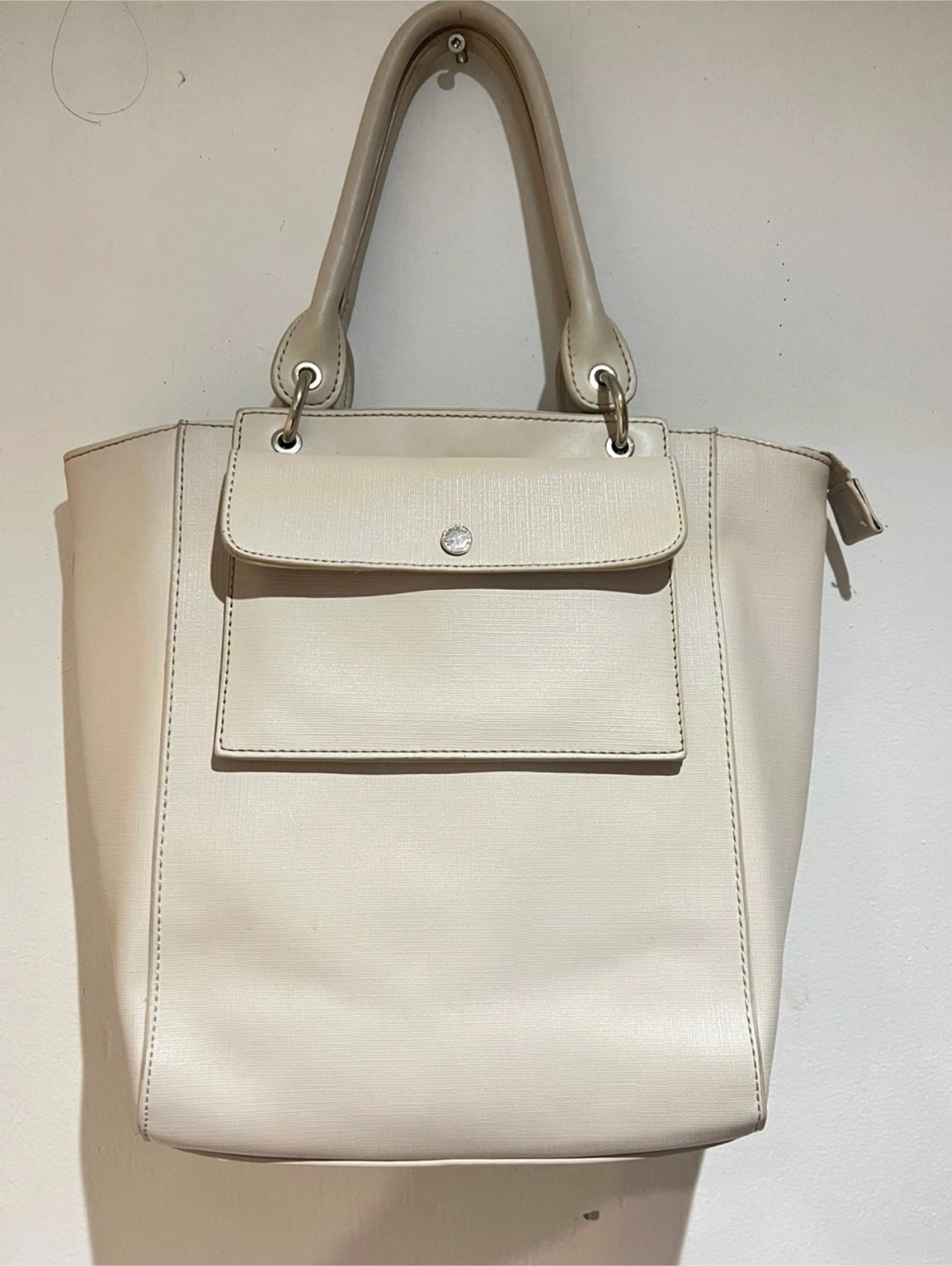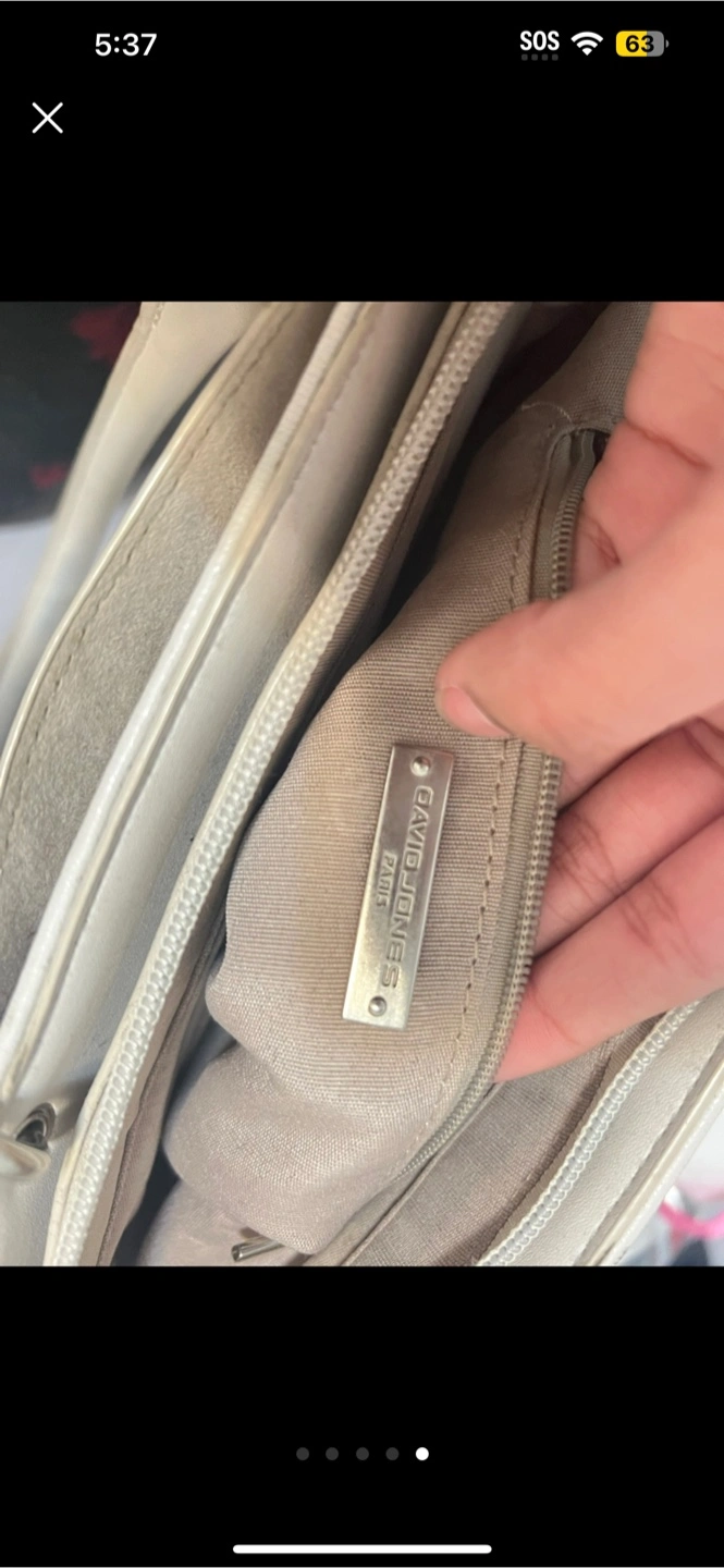 Selling a beige tote bag from David Jones Paris. It's in used condition, with some wear and tear, but still has lots of life left! Perfect for everyday use.