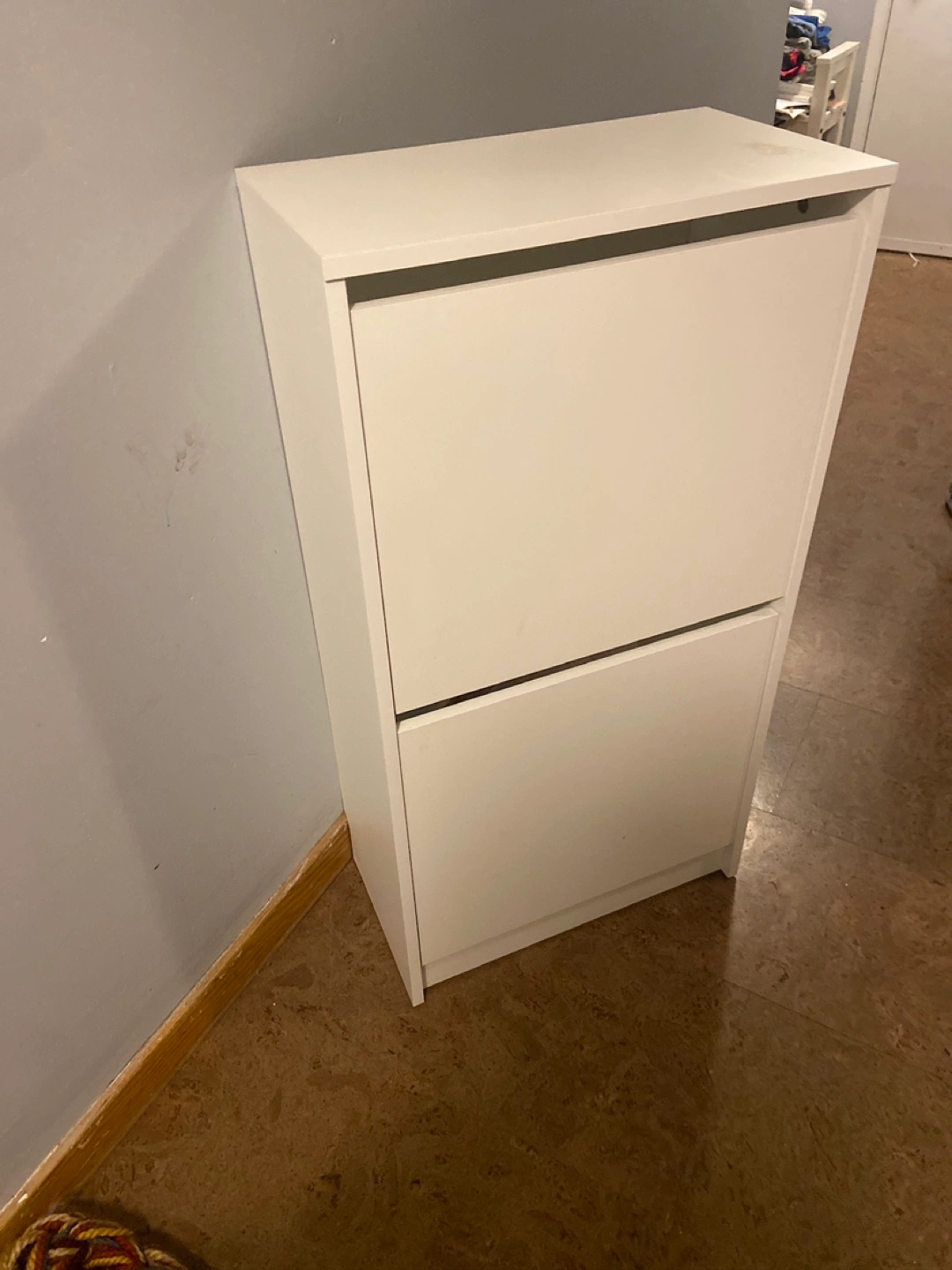 This cabinet is a stylish and functional storage solution for your shoes. It does have a stain on top, unfortunately.