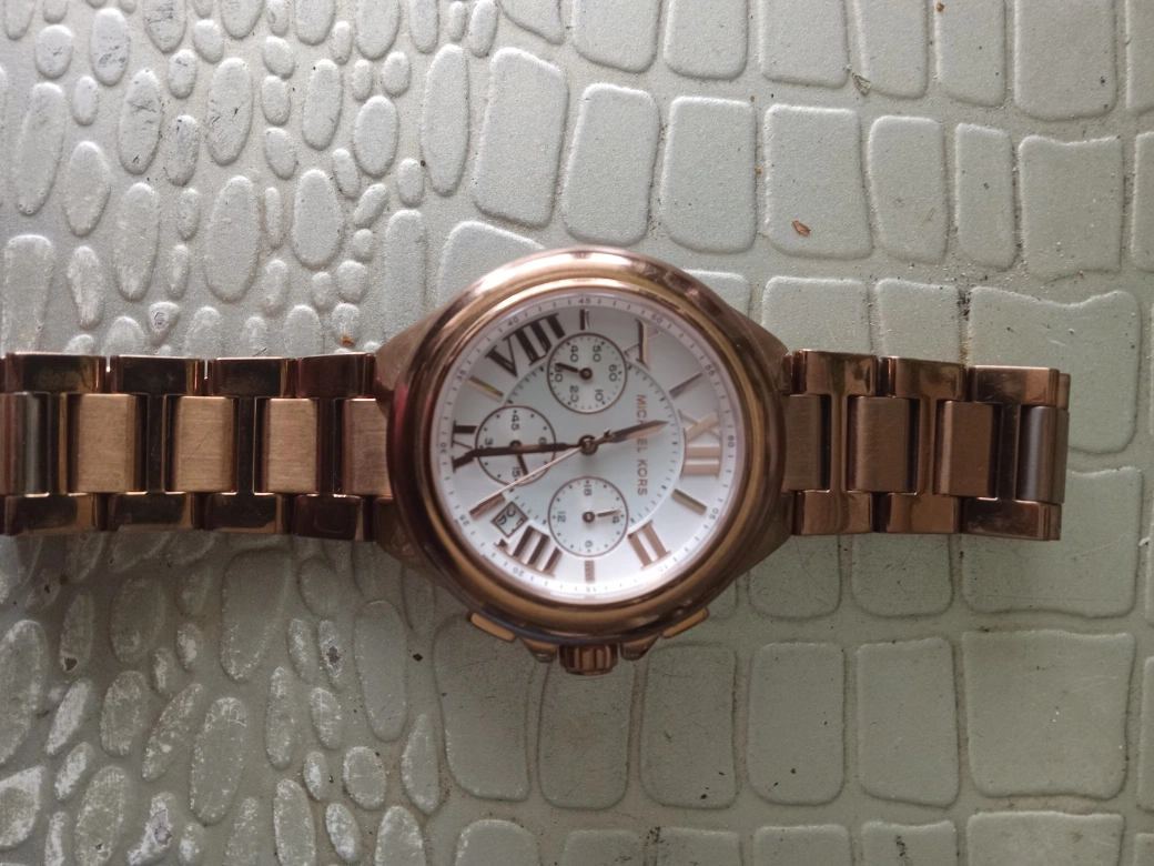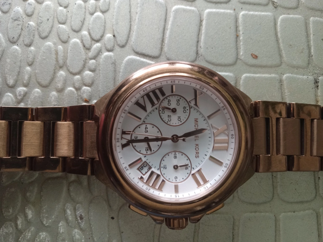 Selling a beautiful Michael Kors watch in rose gold! It's in great condition and ready for a new home. The watch has a lovely white face with Roman numerals, making it a stylish accessory for any outfit. Feel free to reach out if you're interested!