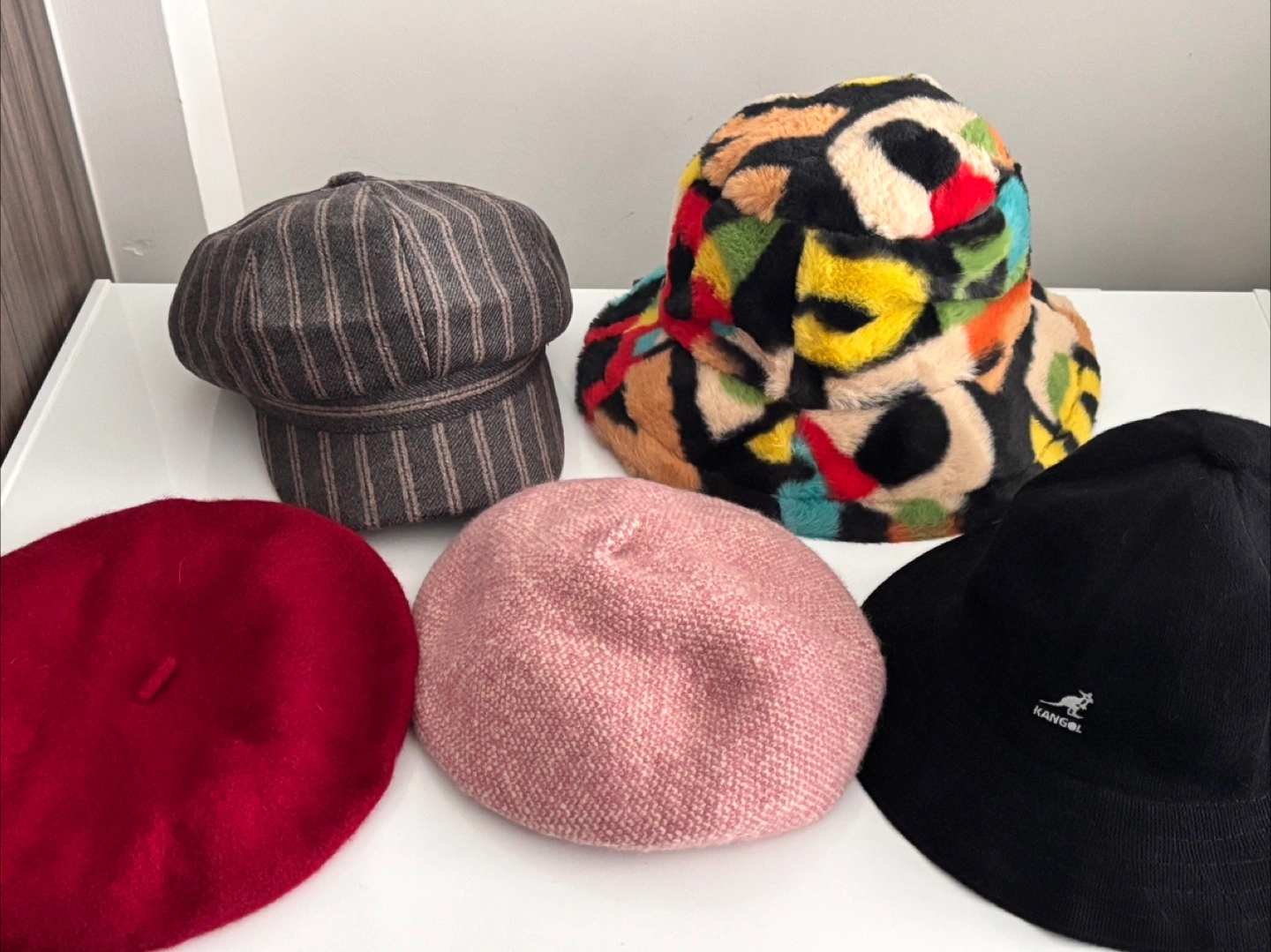 83Selling various designs of women’s hats! All like new - only the gray and pink hats were worn once and others all never worn. $5 each or $15 for all ❌Pink hat is sold!