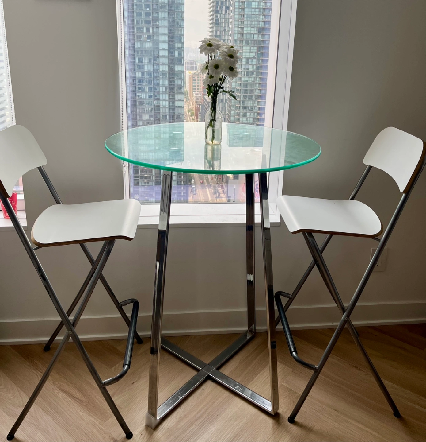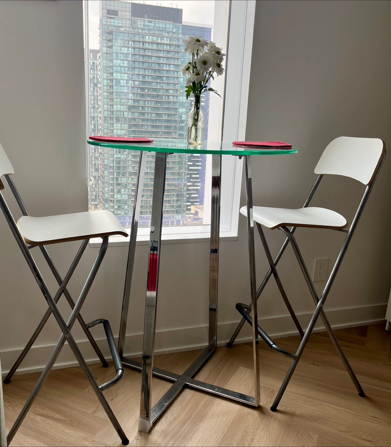 2 Matching Bar Stools (IKEA): Comfortable and complement the table perfectly.