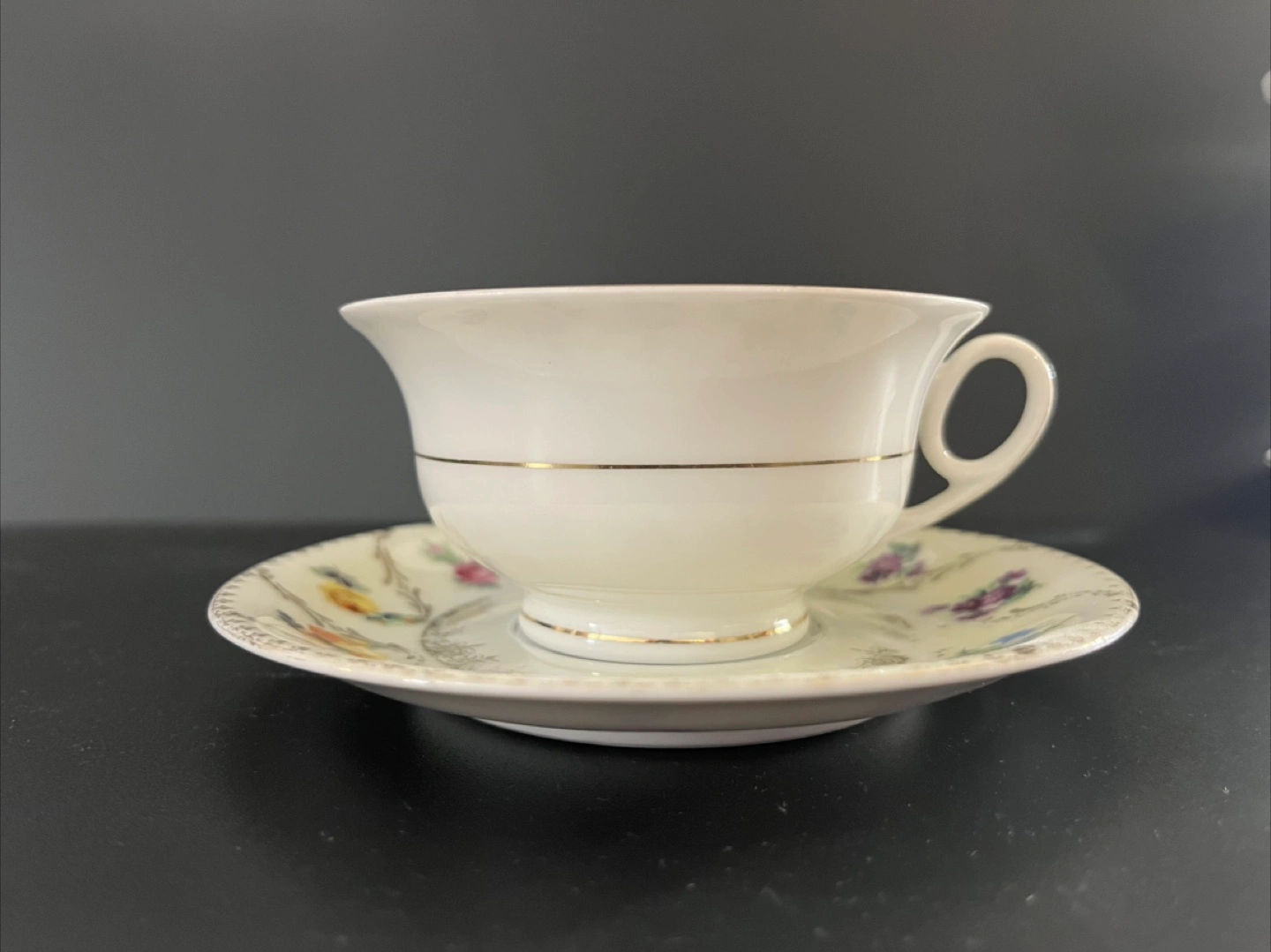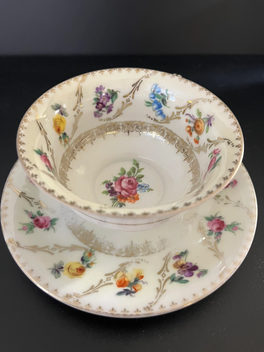 Selling a lovely MZ Altrohlau CMR teacup and saucer set. The teacup and saucer are decorated with delicate floral patterns and gold trim. Perfect for adding a touch of vintage charm to your tea time!