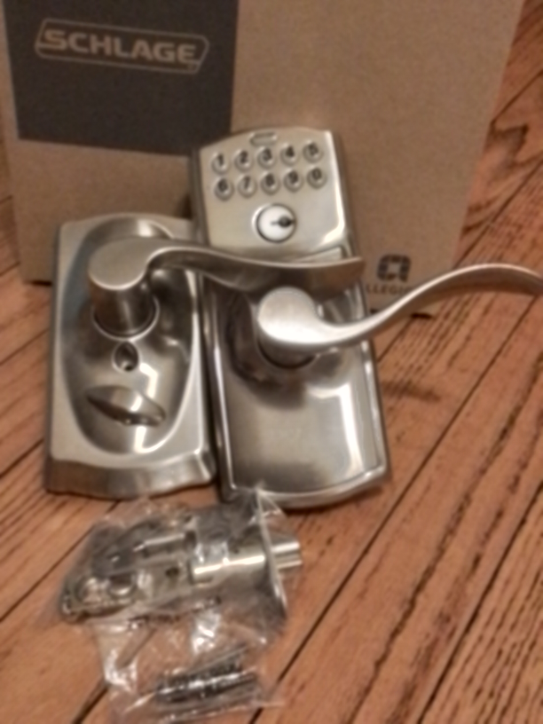 Selling a Schlage keyless entry door lock. It offers electronic entry and easy installation with instructions. Never used as dad bought one too many.
