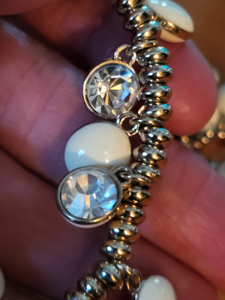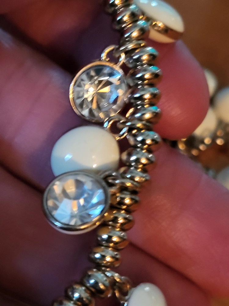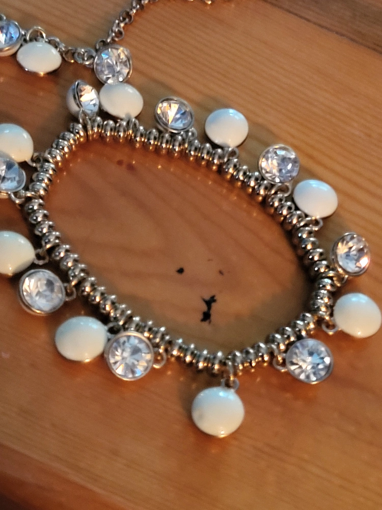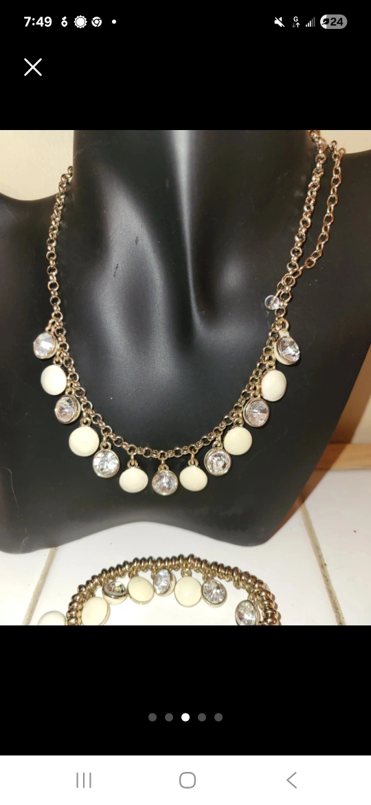 Selling a cute necklace and bracelet set! It features a gold-tone chain with white and clear stone pendants. Perfect for adding a little sparkle to your outfit!