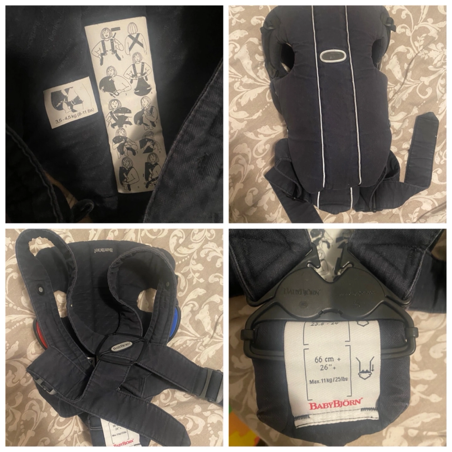 Looking to pass along this BABYBJÖRN baby carrier. It's in great shape and ready for a new little one! The carrier is designed to accommodate babies weighing between 3.5-4.5 kg (8-11 lbs) and up to a maximum weight of 11 kg (25 lbs). It fits heights around 66 cm / 26".