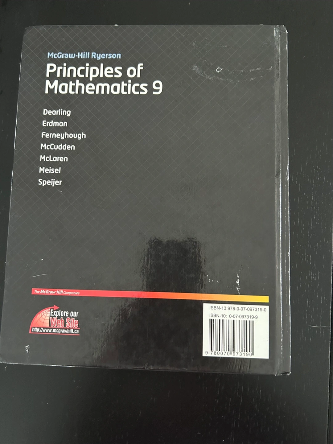 Selling a used copy of McGraw-Hill Ryerson's "Principles of Mathematics 9" textbook. It's in good condition and ready for a new student!