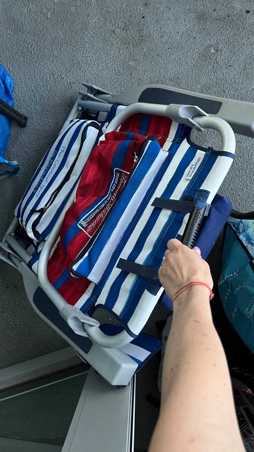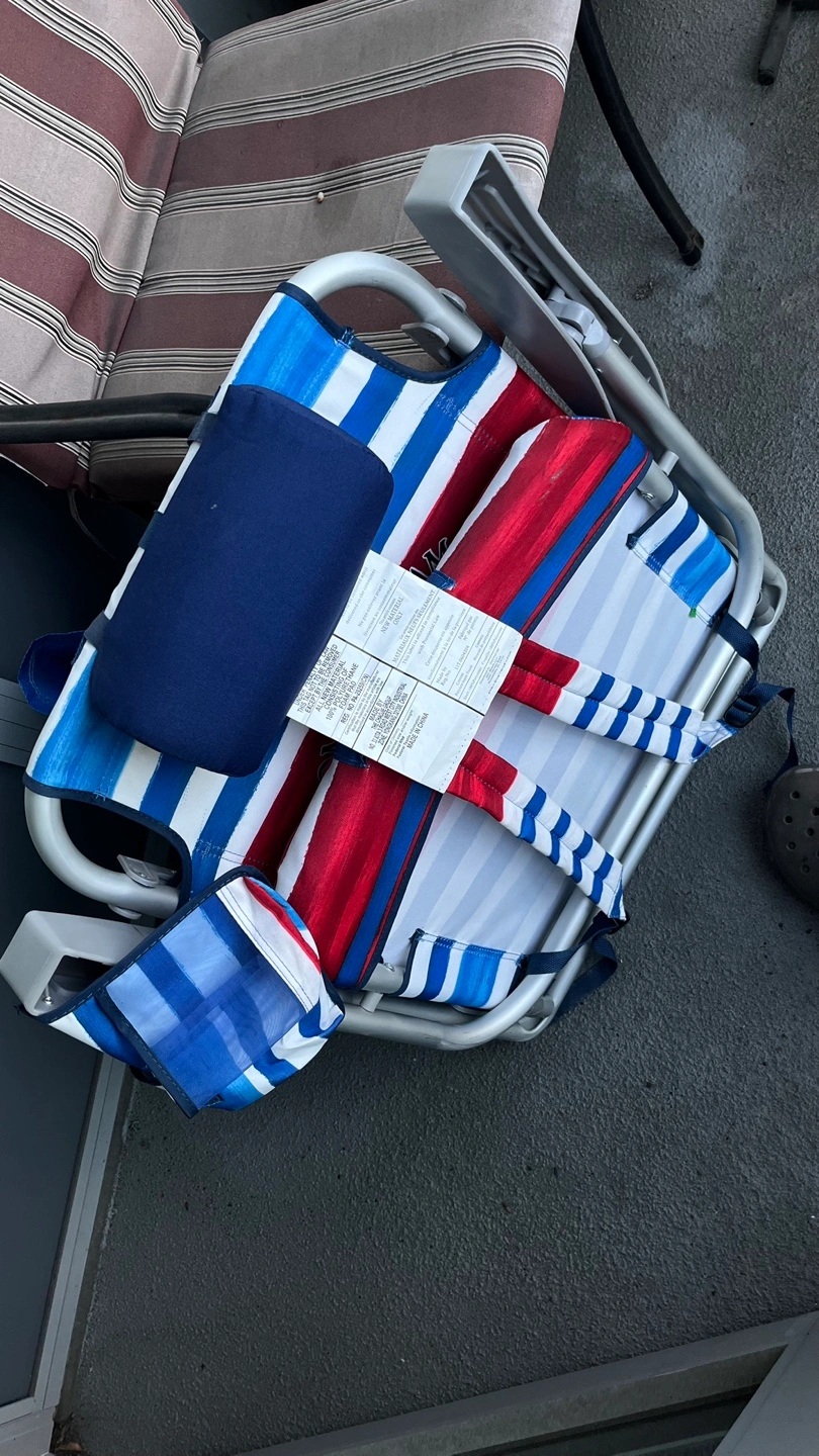 Tommy Bahama beach chair in red, white, and blue stripes! It's in great condition and ready for some fun in the sun