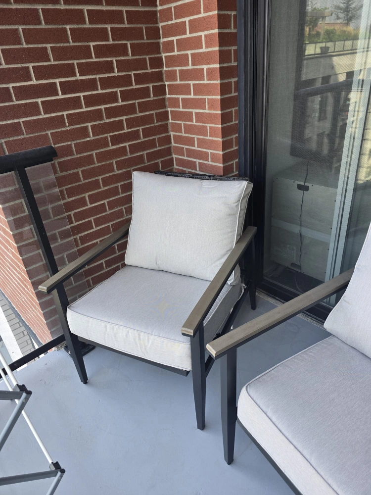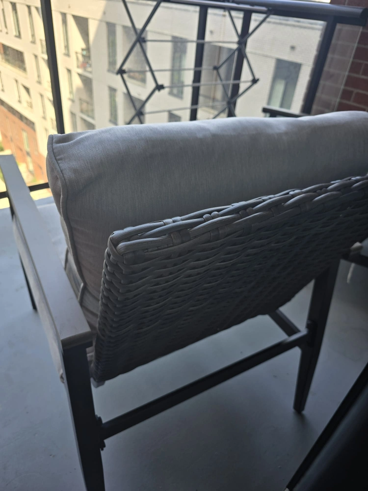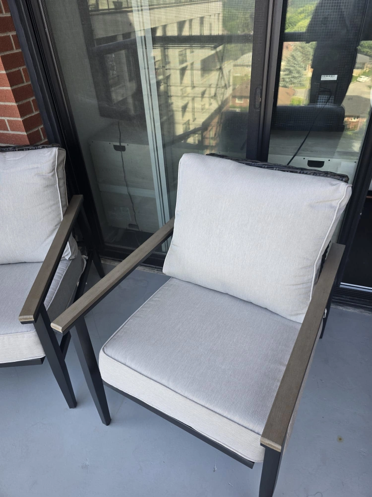 97Selling a comfy outdoor patio armchair! It's in great shape and ready for your balcony or backyard. The grey colour is neutral and goes with everything. Perfect for relaxing on those warm summer evenings! Metal frame with comfy cushions. Pick up nearest intersection Keele and Wilson.