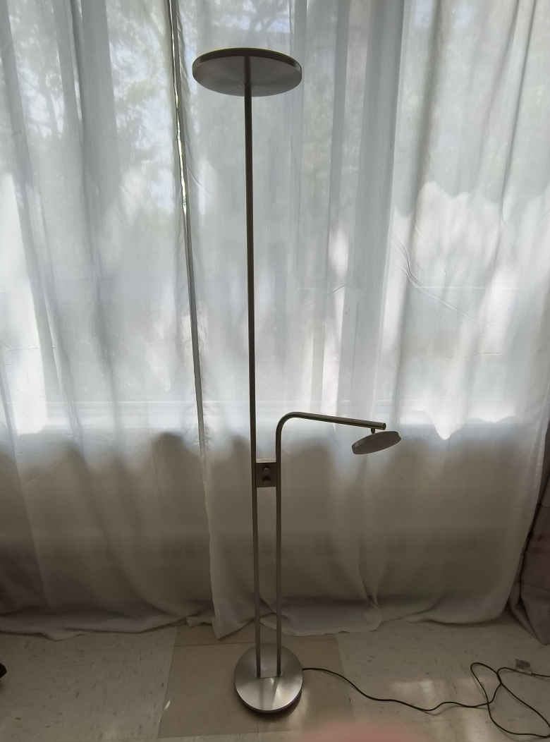 Selling a silver floor lamp. It's in good condition and would look great in any room!