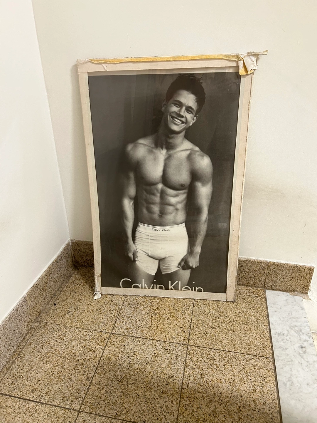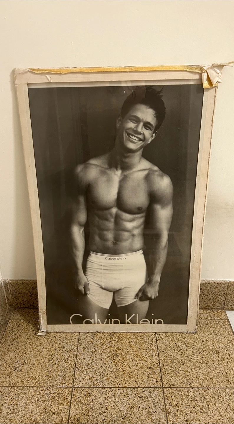 Highly rare & collectible 24” x 38” 1990s MARKY MARK Wahlberg CALVIN KLEIN Underwear Poster ( the one that was super sized in Times Square, NYC). I sealed it in between two sheets of lucite ( the heavy tape is peeling off ). The poster itself inside is in near mint condition. I got the poster from a high-end Men’s boutique clothing store in SEVILLE, Spain in 1993. 😊
