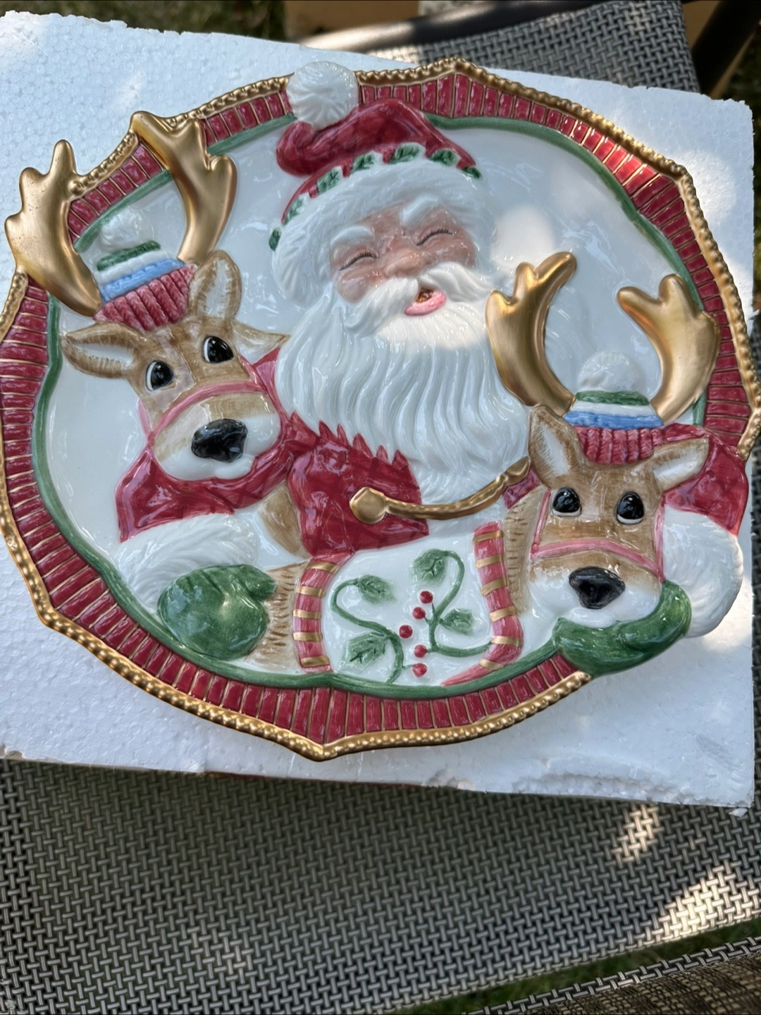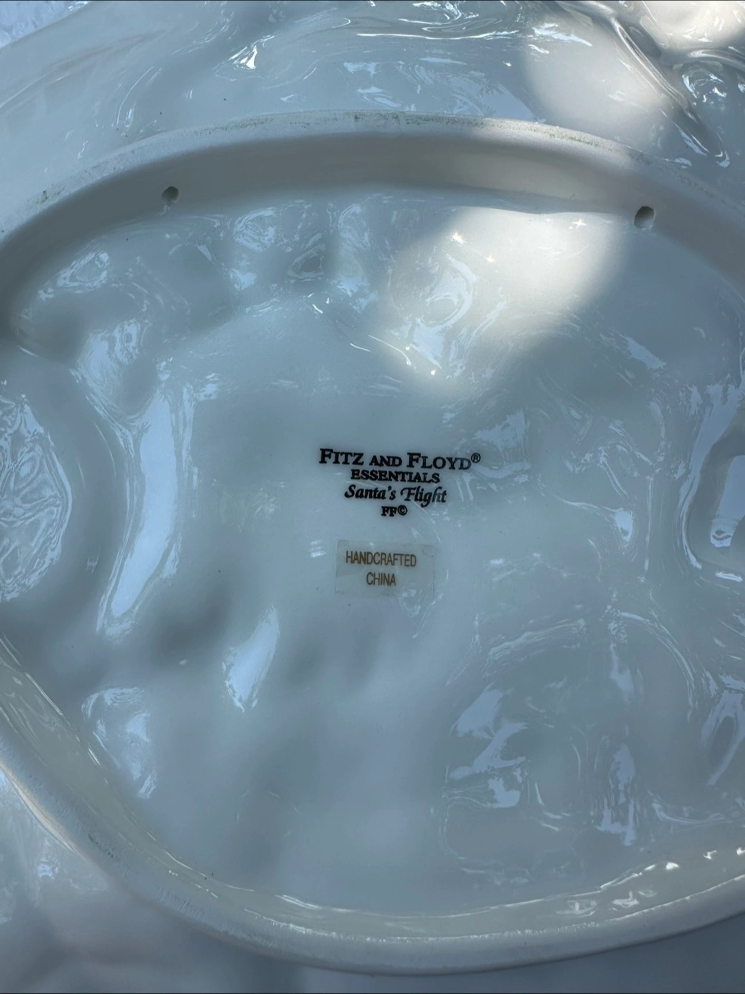 Fitz and Floyd Essentials "Santa's Flight" plate in great condition! Handcrafted in China, this festive plate features Santa and his reindeer. Perfect for adding a touch of holiday cheer to your home