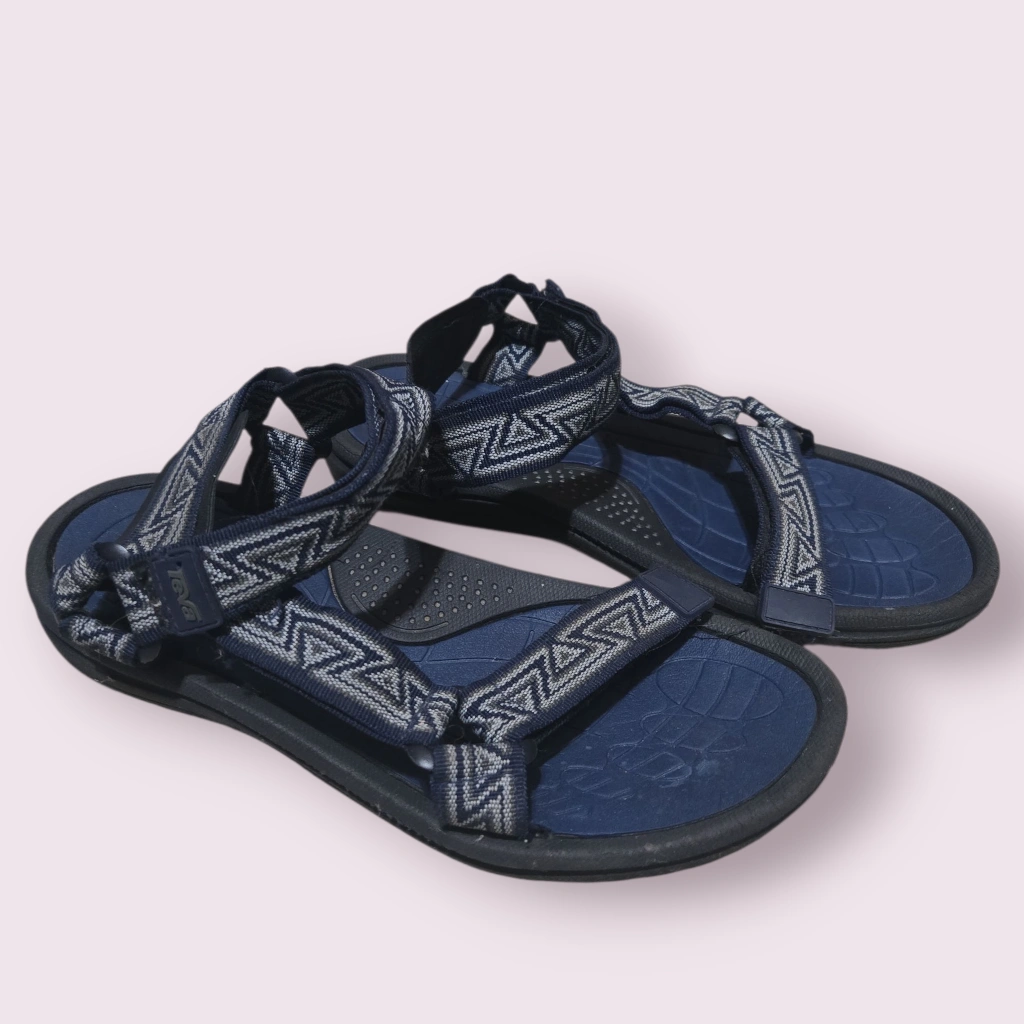 These Teva sandals are perfect for outdoor adventures or just kicking around town! They're a size 10 and feature a comfortable footbed and adjustable straps for a secure fit. In good condition and still has lots of life left to it