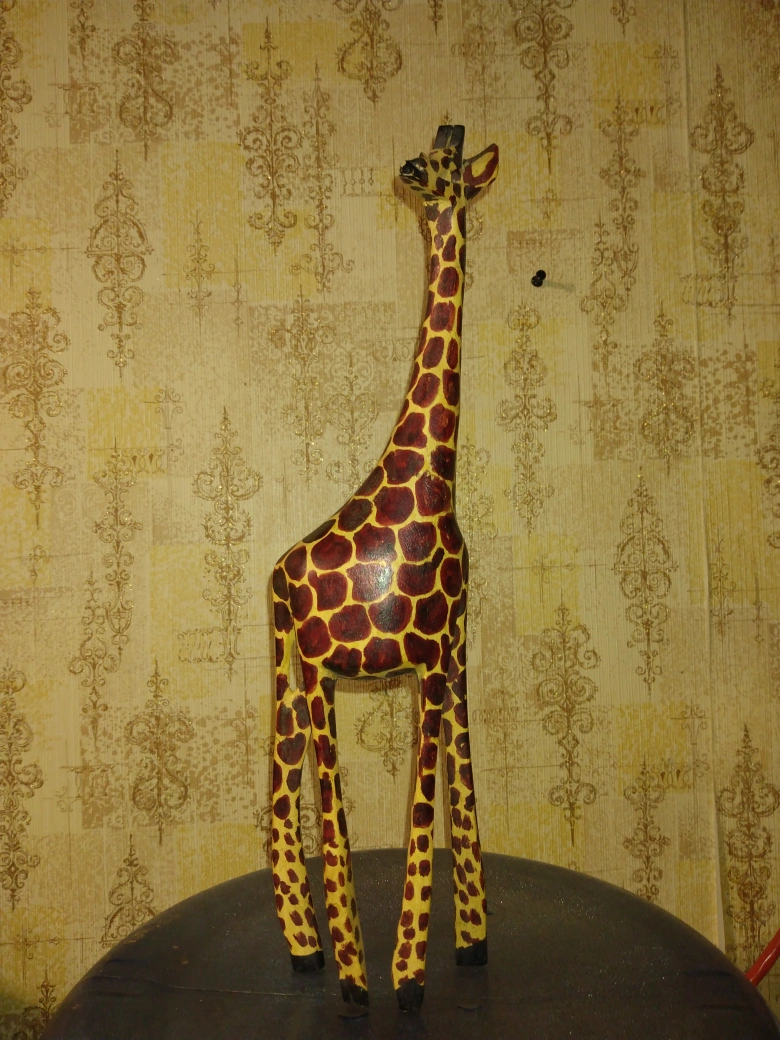 71Selling a hand carved wooden giraffe figurine. It is in great condition and would make a lovely addition to any room!